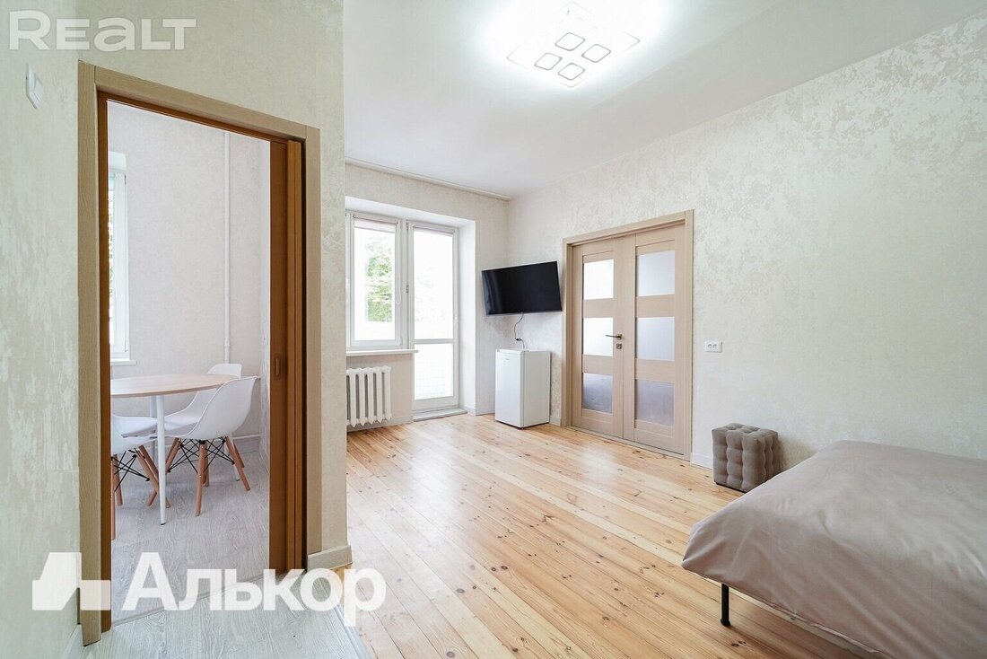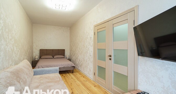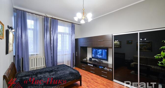 Почти за эти же деньги можно купить двухкомнатную квартиру на Романовской Слободе. Пару минут до станций метро «Фрунзенская» и «Ковальская Слобода» и минут семь пешком до станции «Немига».
