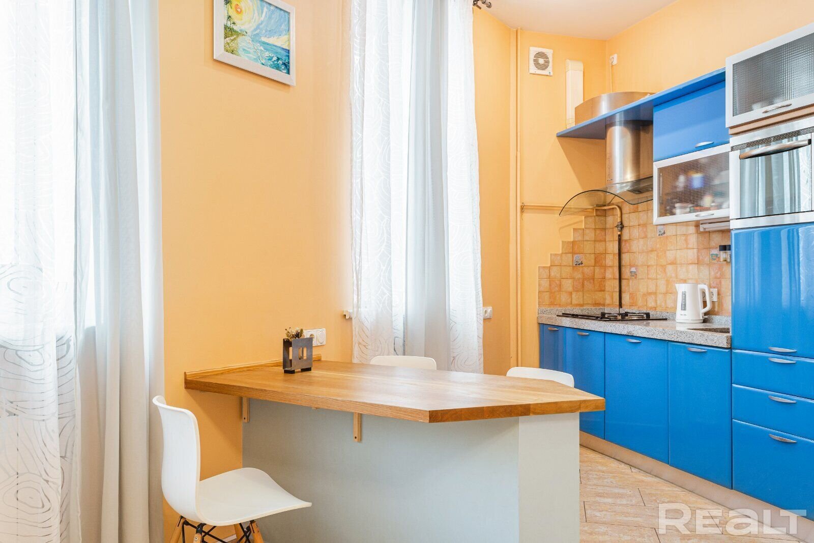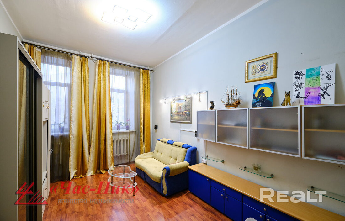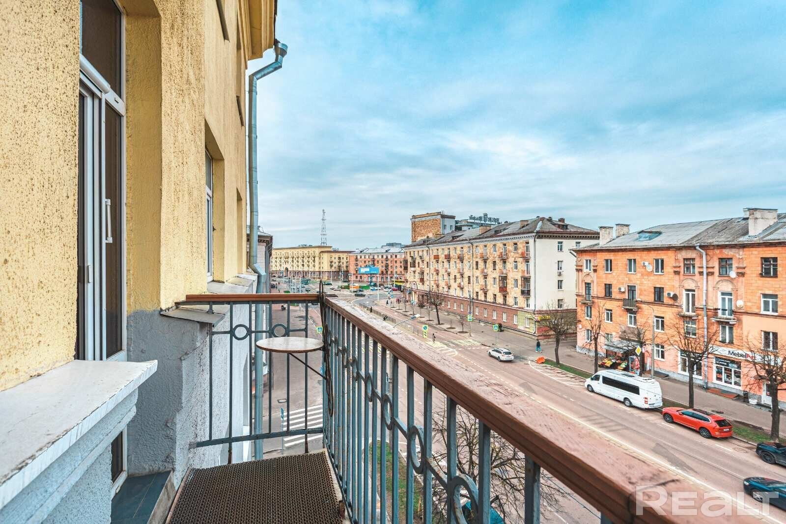 Есть в нашей подборке и квартира в знаковом доме. Этот дом на Мясникова, 76 построили в 1918 году, а в 2020 году сделали капремонт. Вы могли видеть с улицы необычный луковичный балкон. Кстати, в квартире с этим балконом жил белорусский писатель Янка Мавр. Сейчас на втором этаже в этом доме продают квартиру.