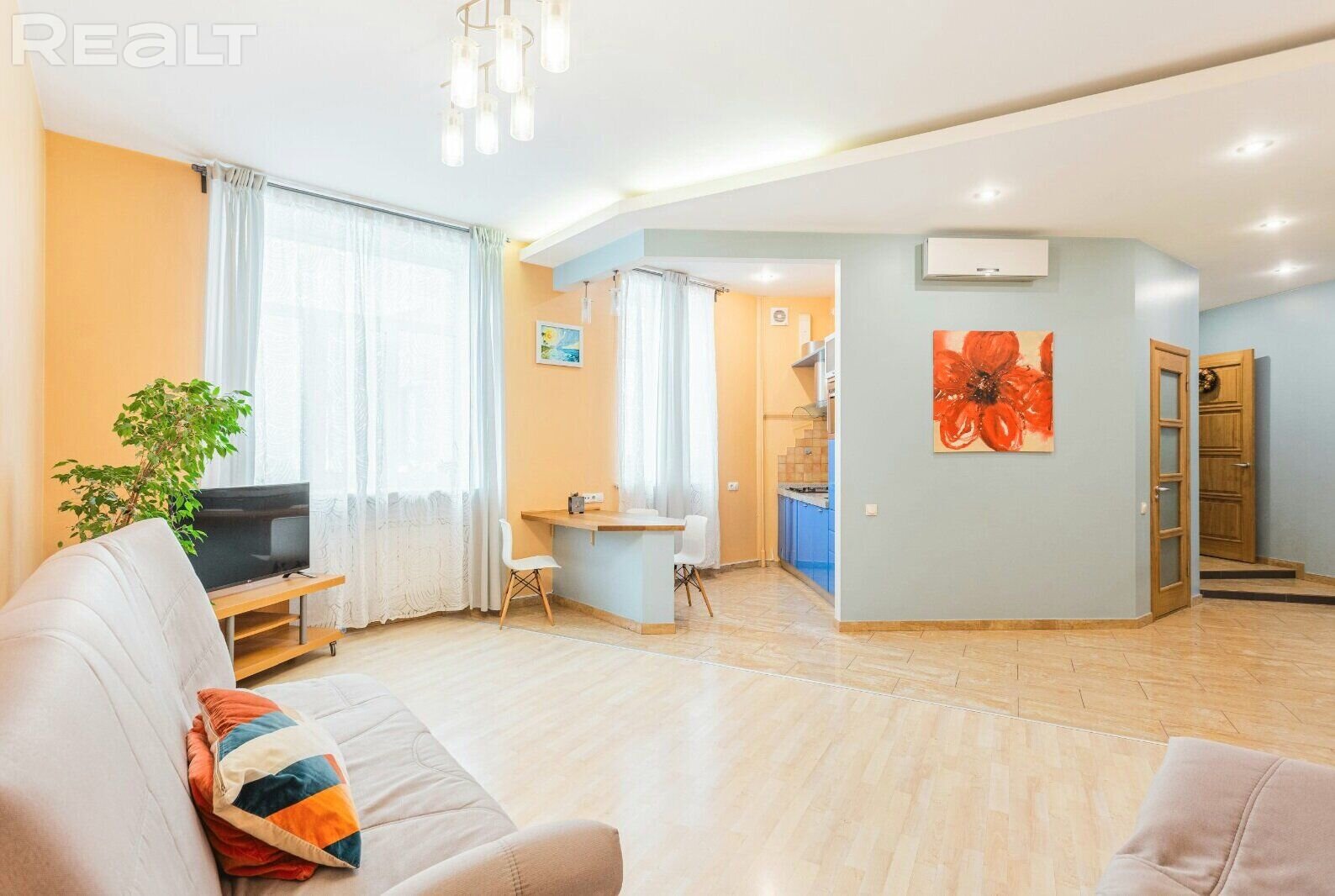 Цена у этой квартиры — 149 900 долларов. Метр — 3 252 доллара. Ее, как и другие квартиры на Realt, можно купить в лизинг. Первый взнос должен быть не меньше 45 тысяч долларов. Различные условия лизинга — в объявлении.