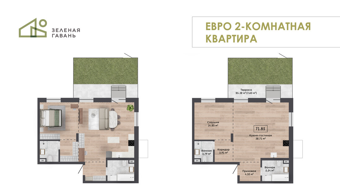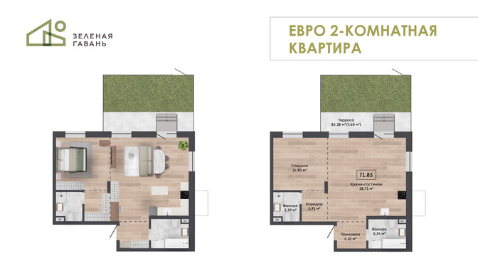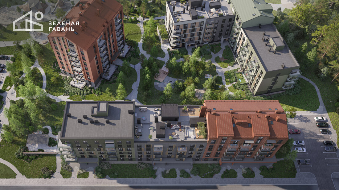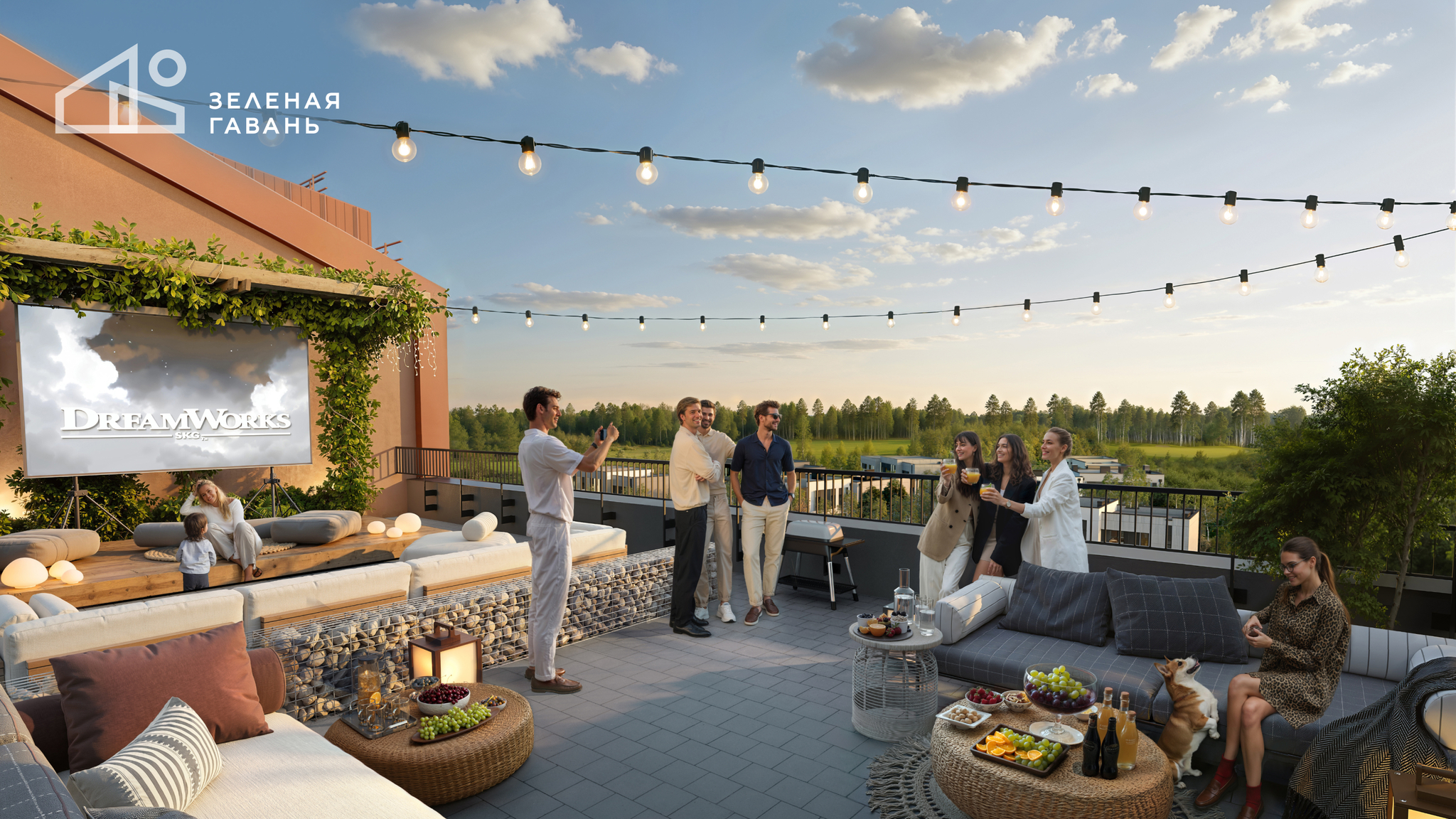 На первом этаже будут квартиры с террасами площадью 24−25 квадратов с выходом во двор. С последнего этажа можно будет попасть на sky-террасу — эксплуатируемую крышу с панорамным видом на гольф-поля. Есть и квартира с собственной террасой на кровле и отдельным выходом на нее прямо из жилого пространства.