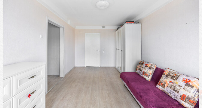 Квартира выставлена на продажу в 12-этажном доме на проспекте Рокоссовского, 58/1. Он был построен в 1985 году. Трешка располагается на третьем этаже. Ее площадь — 64,2 м², кухня занимает 8,8 м².