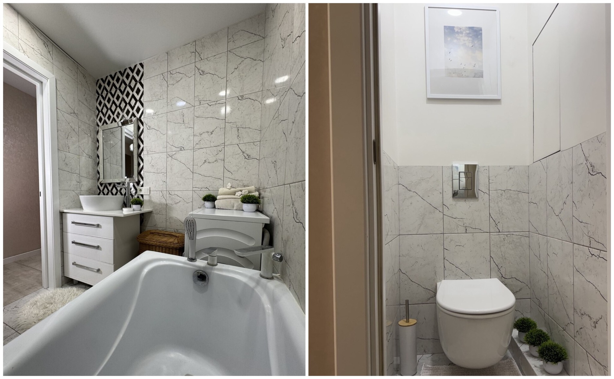 Санузел здесь раздельный. Из гостиный есть выход на балкон, который идет на две комнаты.