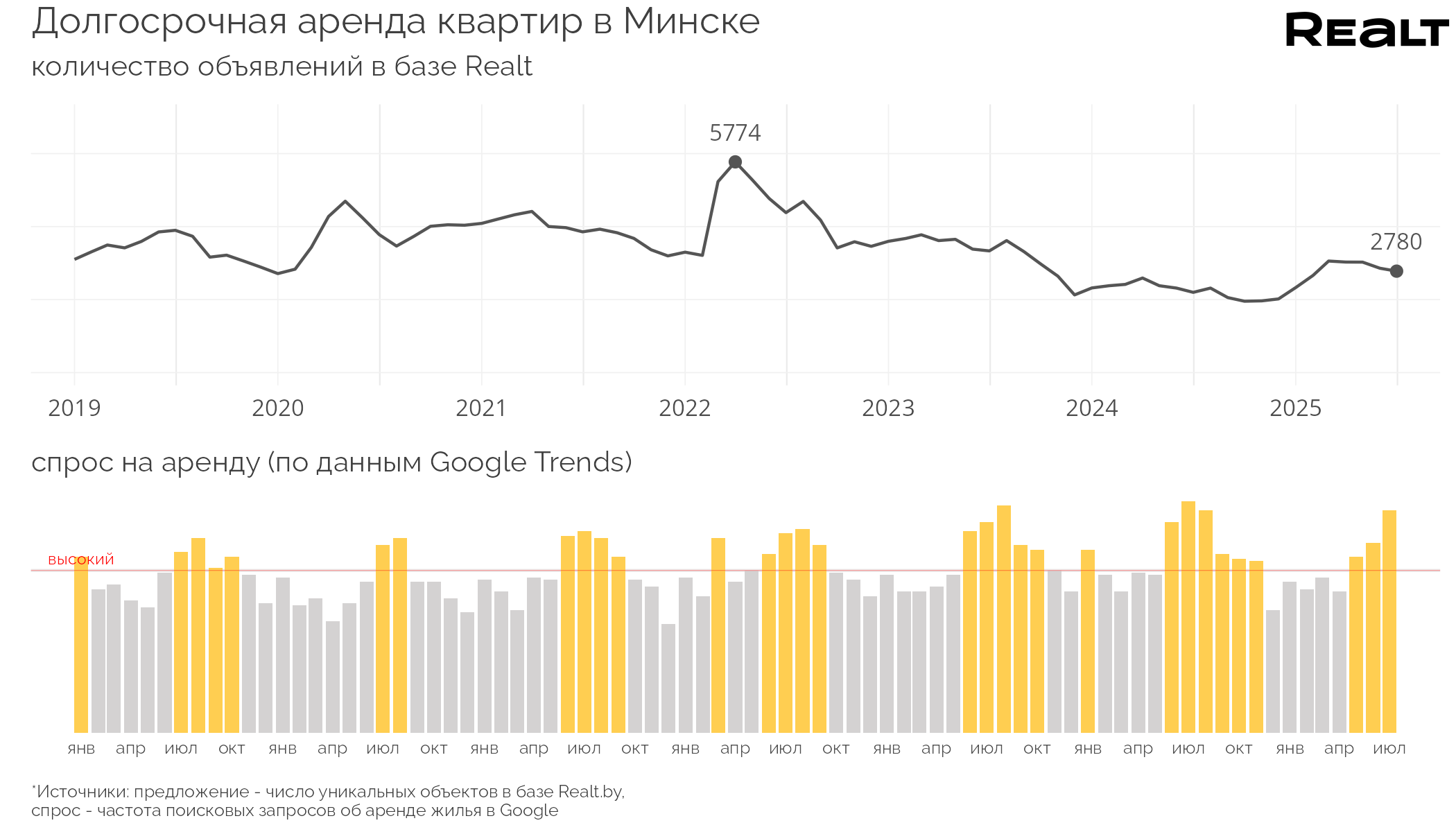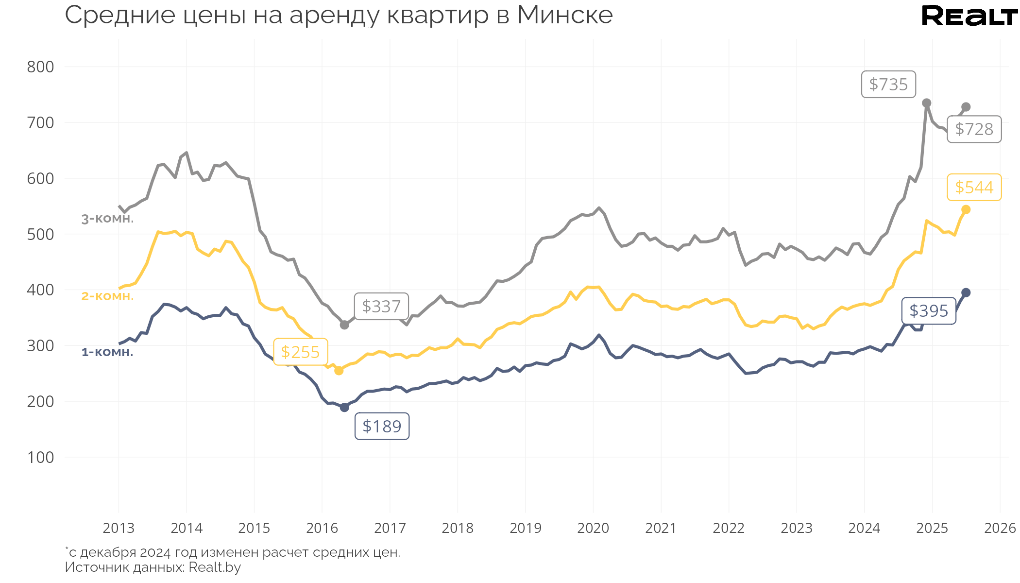 В целом за последние 12 месяцев стоимости предложения долгосрочной аренды квартир в Минске выросли на 24 — 32% в зависимости от типа квартир.