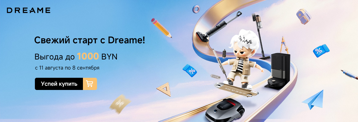Акция продлится с 11.08 по 08.09. Места продажи: 5element, Sila, XiStore, 21 vek MTS, A1, NSV, фирменный магазин Dreame в ТРЦ Palazzo.