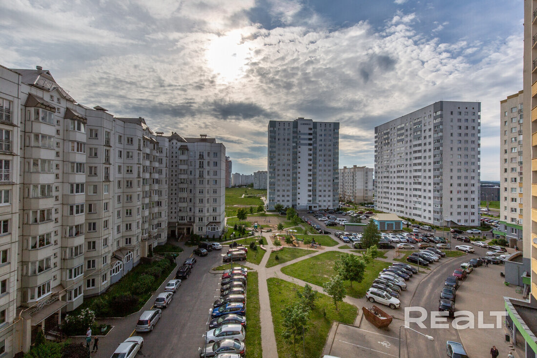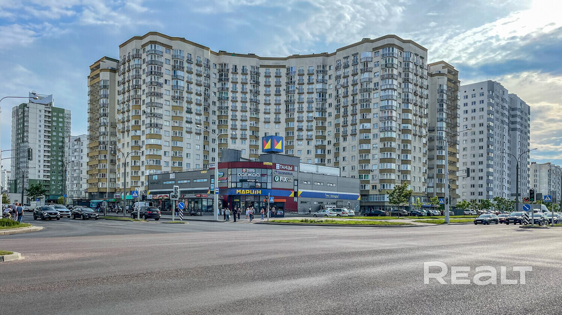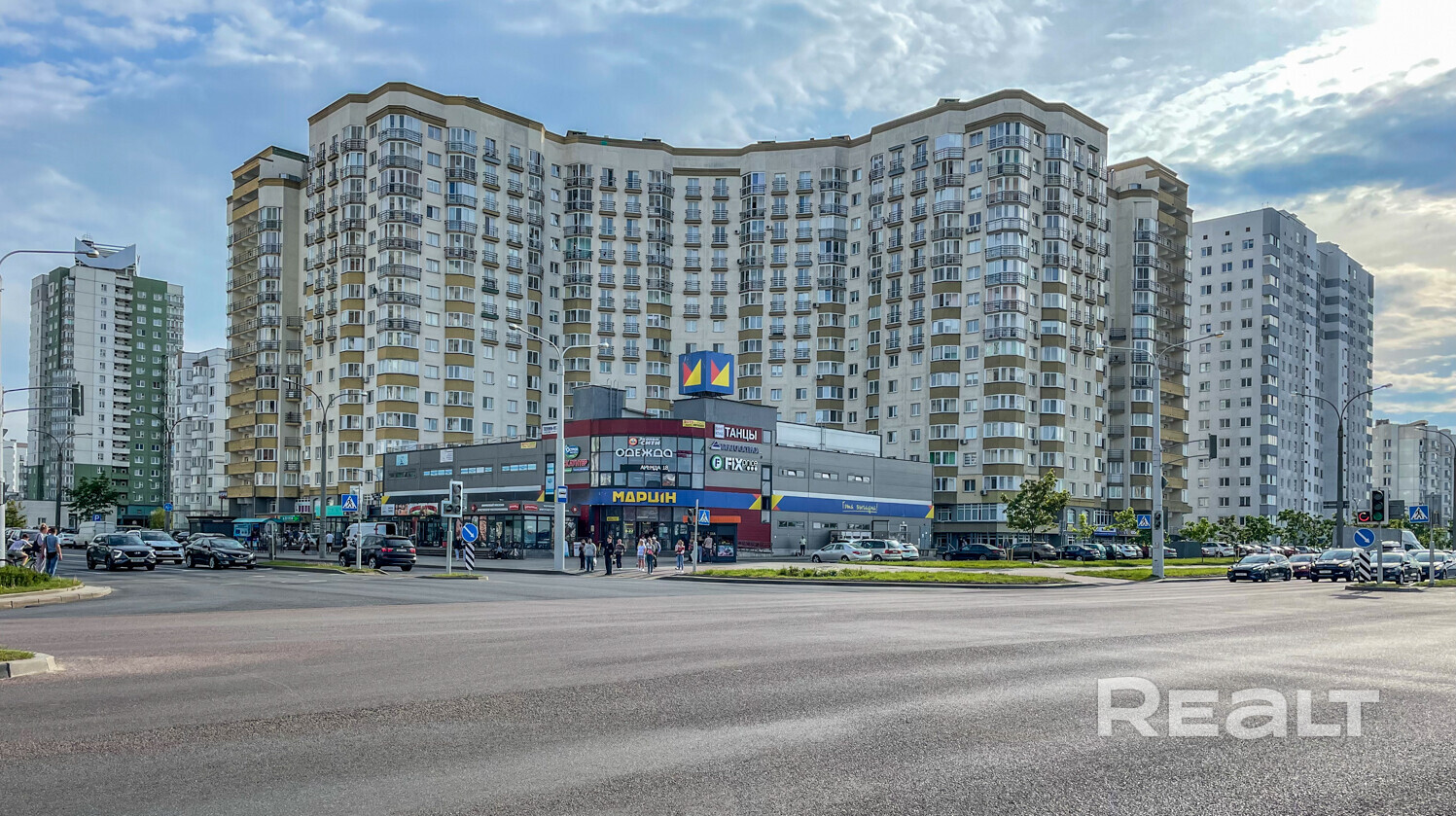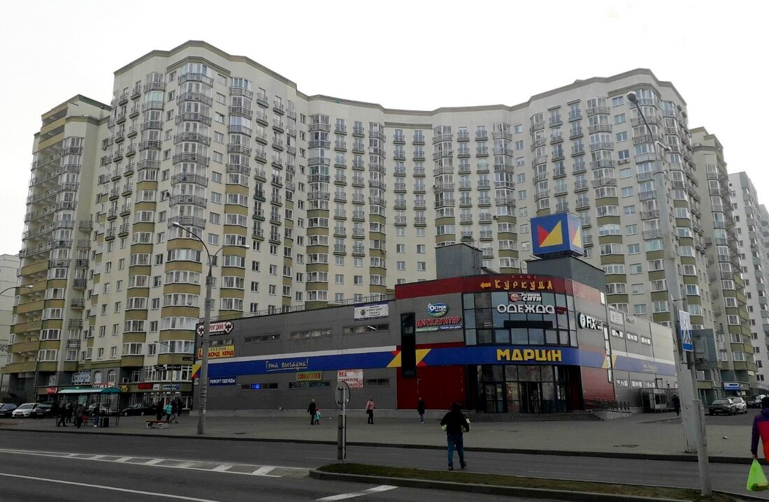 Кстати, в самые первые годы никакой особой инфраструктуры рядом с новостройкой не было. Сегодня же квартал, в котором расположен дом, можно назвать центром притяжения всего микрорайона. Так, прямо под высоткой вырос торговый комплекс с магазином «Мартин», наискосок круглосуточно работает огромный гипермаркет «Евроопт», а напротив уже достраивают физкультурно-оздоровительный комплекс с бассейном. Кроме того, неподалеку в 2026 году должен открыться многострадальный ТРЦ «Мега Парк», который в прошлом году наконец обрел нового владельца.