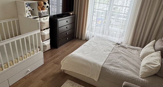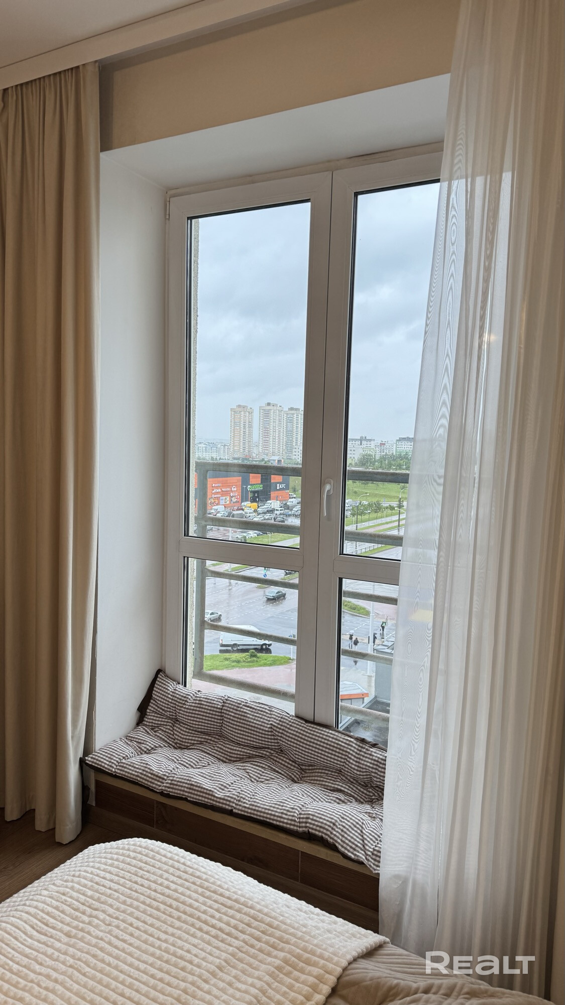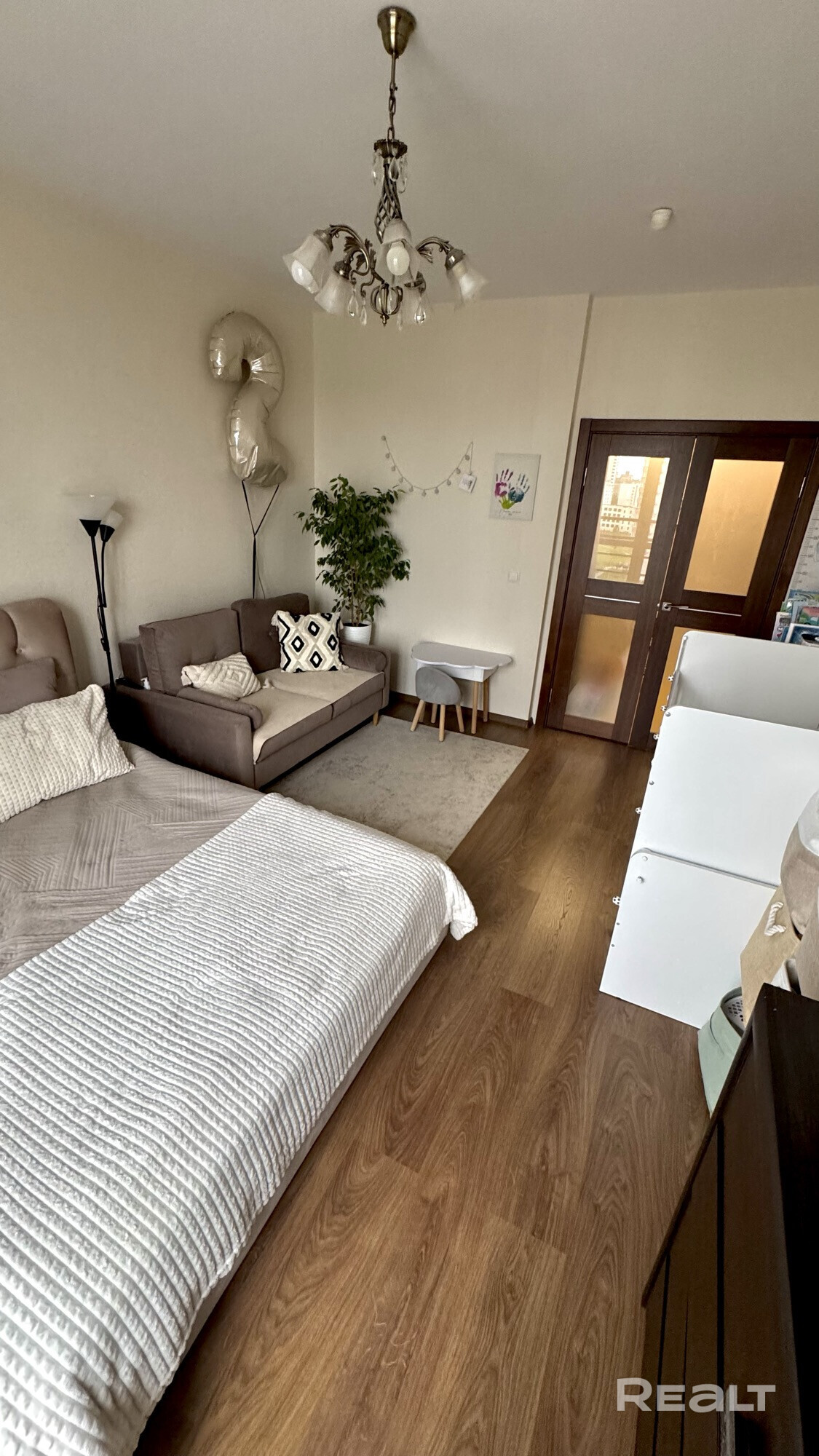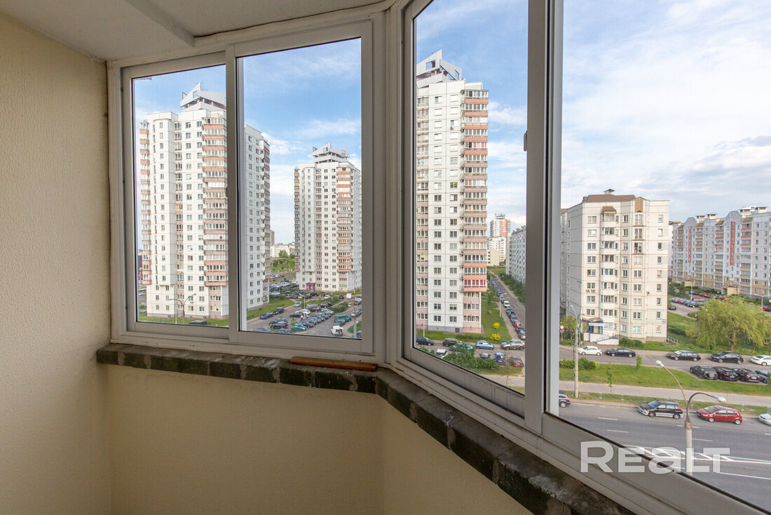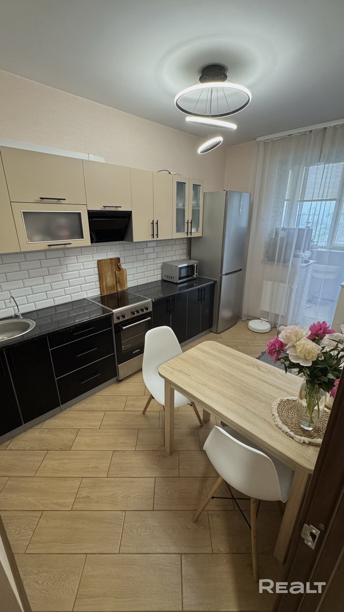 В однушке уже сделан качественный ремонт (плитка, обои, ламинат), квартира полностью готово к проживанию. На лоджии, примыкающей к кухне, устроена зона отдыха с видом на город. Стоимость квартиры — 89,9 тысячи долларов (2228 долларов — за метр).