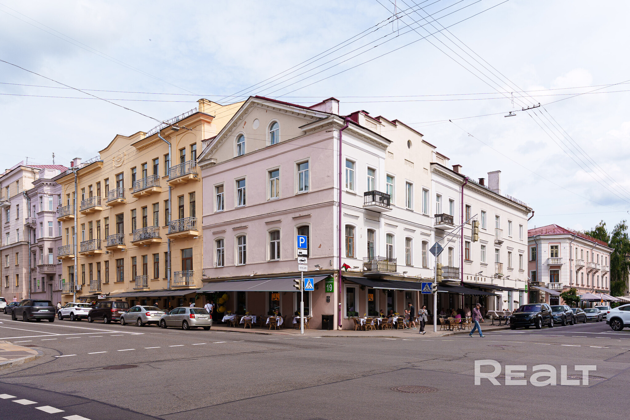 У этого дома в центре Минска двойной адрес — Володарского, 19 и Маркса, 7. Вот это здание.