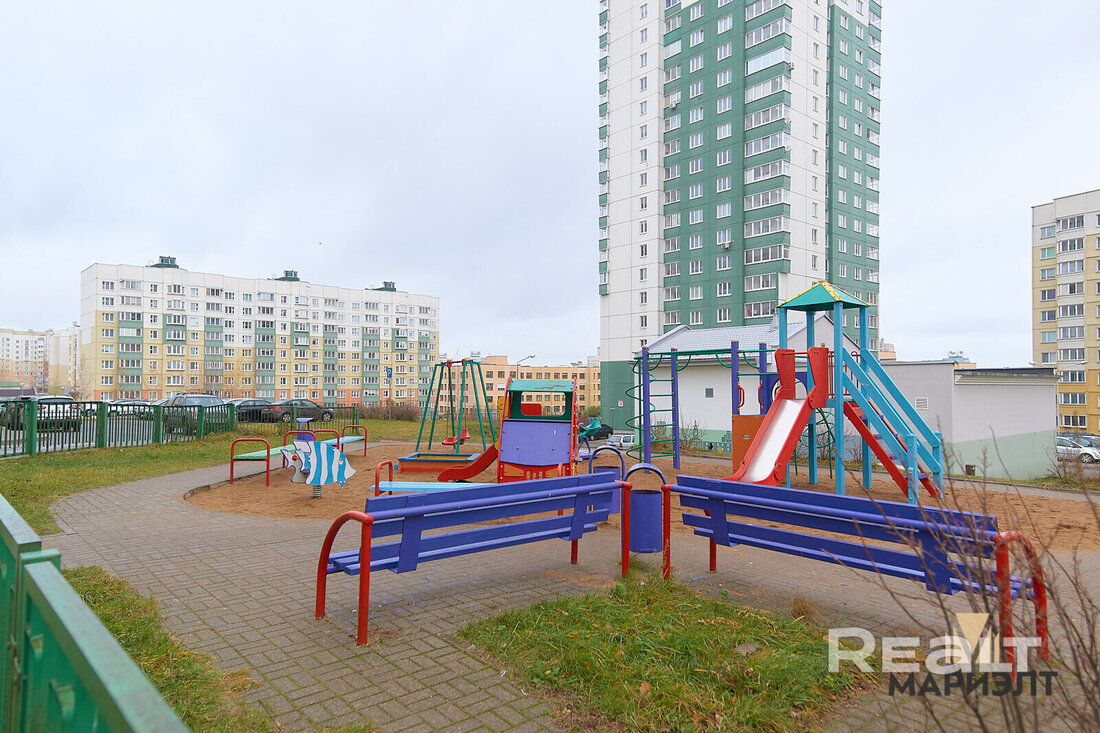 При этом стоит отметить, что у панельного дома — отличное расположение. В двух минутах ходьбы находится живописный парк имени Уго Чавеса, подходящий для пеших прогулок и активного отдыха, рядом — супермаркет «Мартин», торговый центр «Green City», супермаркет «Евроопт». Детские сады и школы, гимназия, поликлиники, кафе, банки и аптеки также расположены неподалеку.
