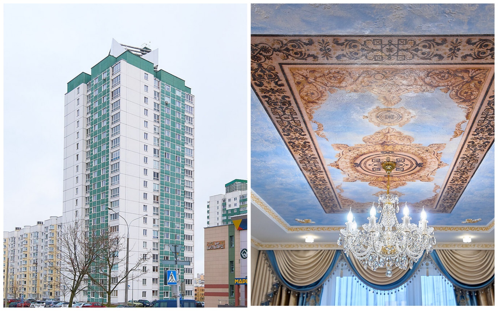 В обычной минской панельке прячется квартира с роскошным ремонтом. Есть даже фреска на потолке!