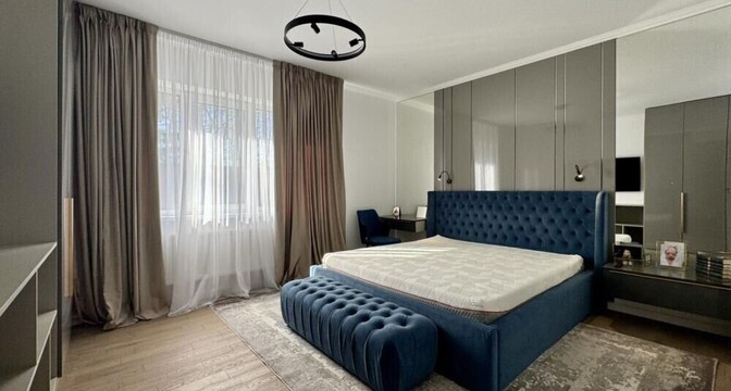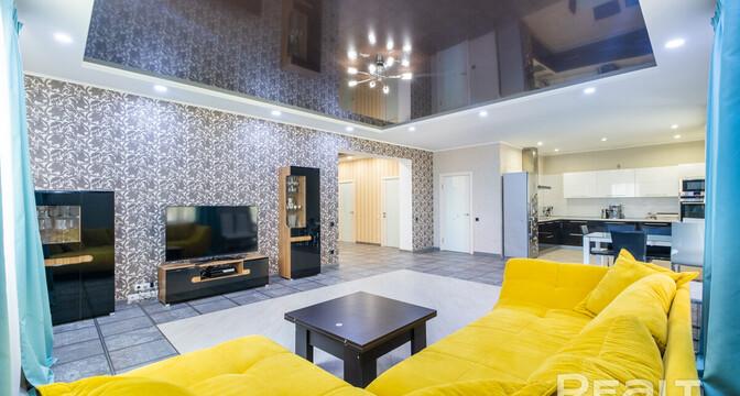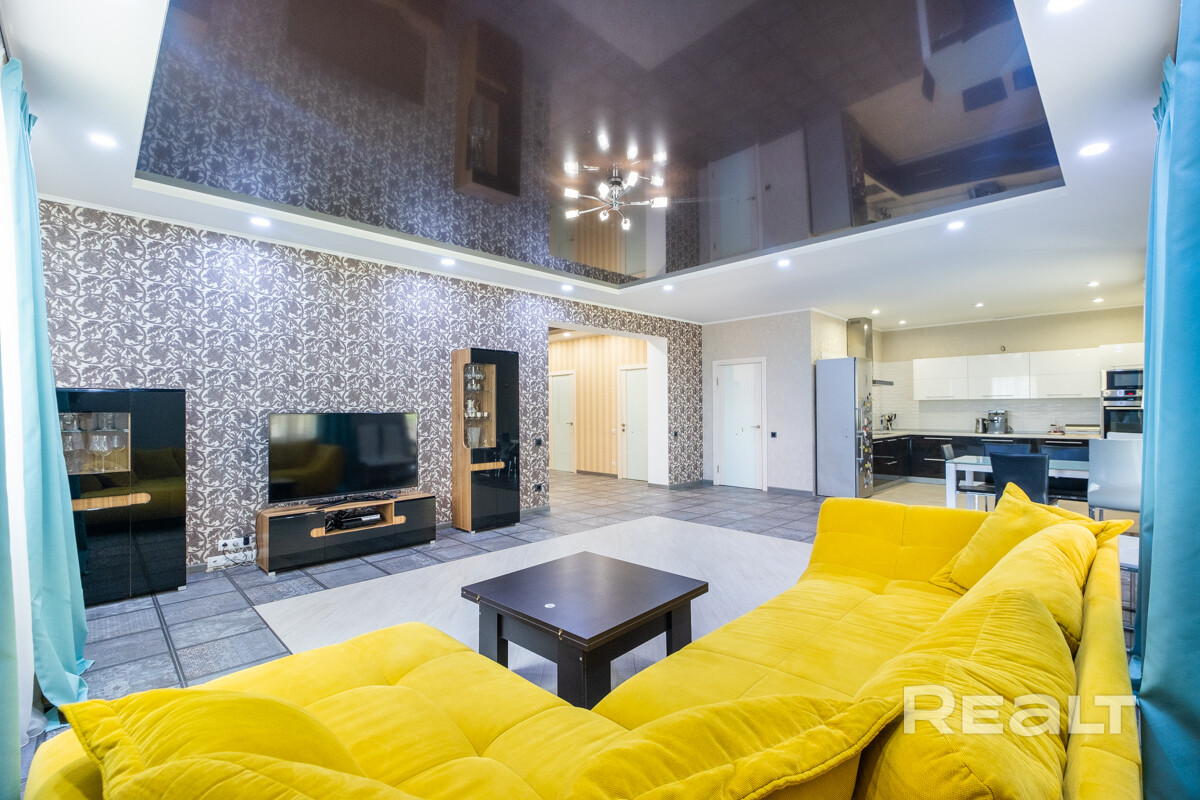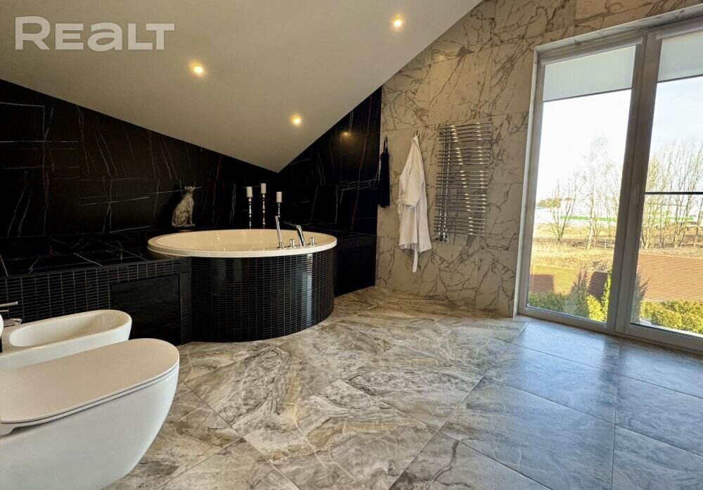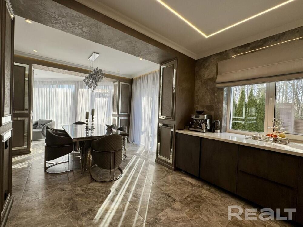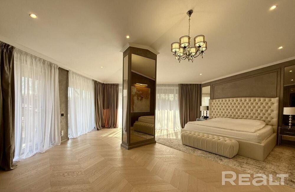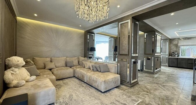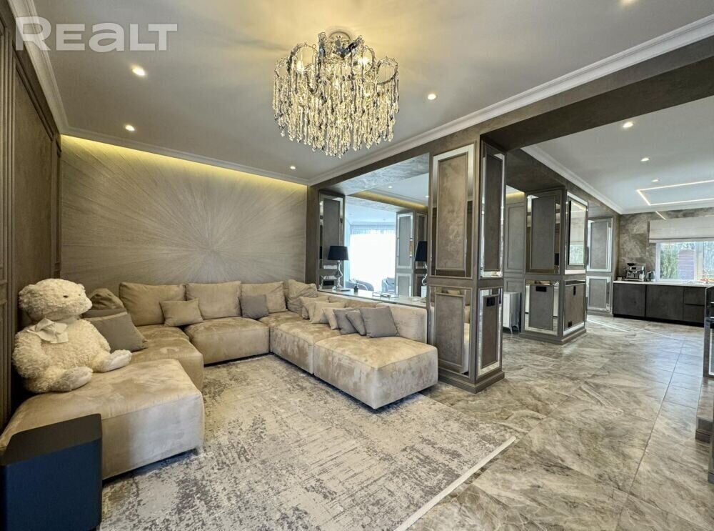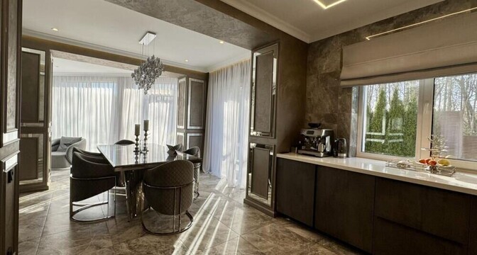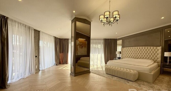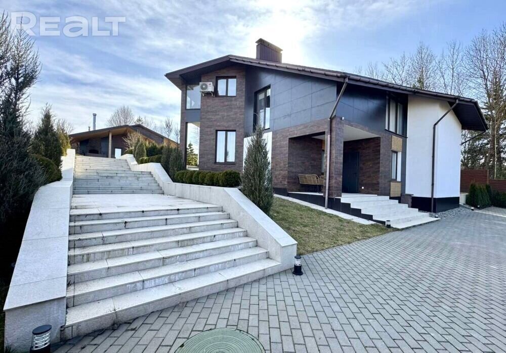 Внутри нестандартная планировка, дизайнерский интерьер, мебель, бытовая техника и сантехника премиум класса. В дом проведено оптоволокно. Придомовая территория (19 соток) с ландшафтным дизайном. Въезд через автоматические ворота. Установлено видеонаблюдение. За этот вариант просят 790 000 долларов.