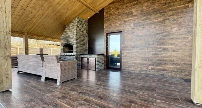 Примерно столько же, 130 000 долларов, стоит двухэтажный коттедж 2011 года постройки на 247,5 м2. В цоколе — гараж. Стены у него деревянные, фасад обложен кирпичом, на крыше — шифер.