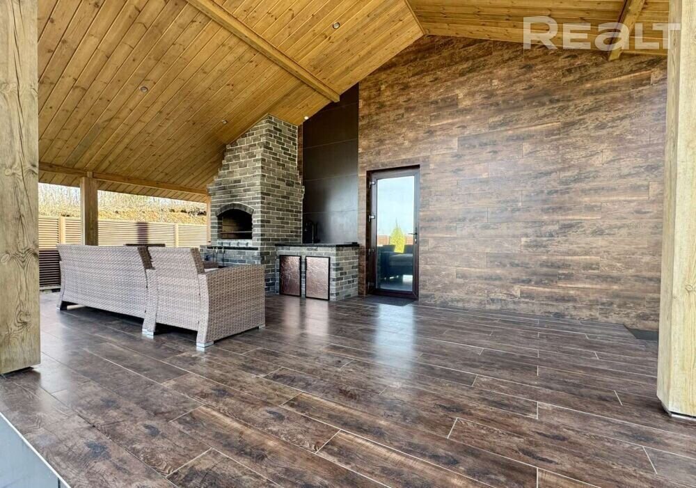 Полностью готов к проживанию. Объект представляет собой жилой дом площадью 267,6 м2, спа-комплекс с сауной и бассейном площадью 60 м2, отдельный крытый гараж на один автомобиль (40 м2) и дополнительный открытый навес на 2 парковочных места.