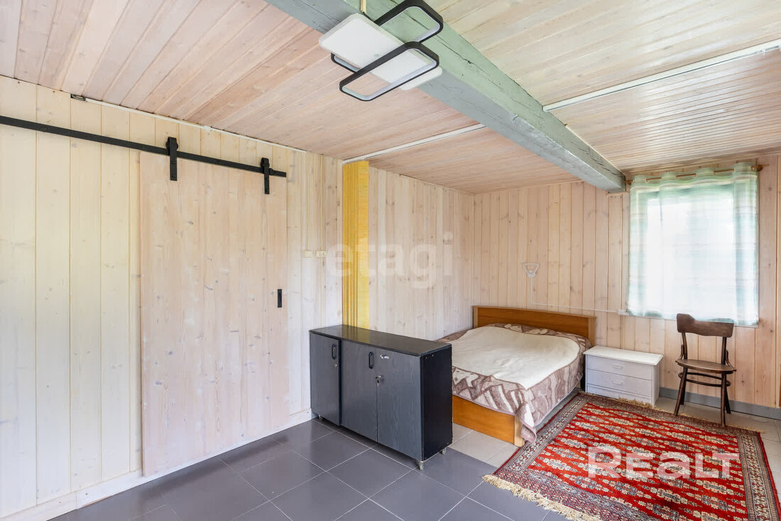 Дом находится в деревне Сухая Гора (30 км от Минска по Мядельскому направлению). Локация шикарная — со всех сторон лес, рядом сразу несколько небольших озер, в округе нет ферм, производств и сельхозугодий. Удобное транспортное сообщение — до остановки общественного транспорта всего 200 метров, ходят маршрутки и автобусы.