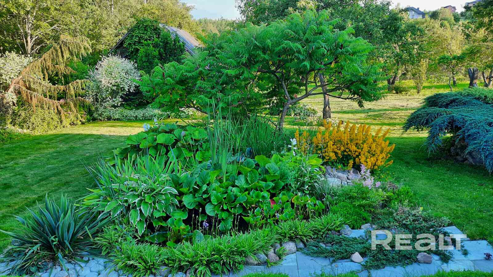 Особое внимание уделено ландшафтному дизайну участка. Природный стиль сада и декоративный прудик гармонично соединяют его с рощей, расположенной по соседству.