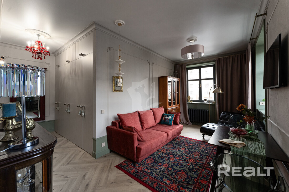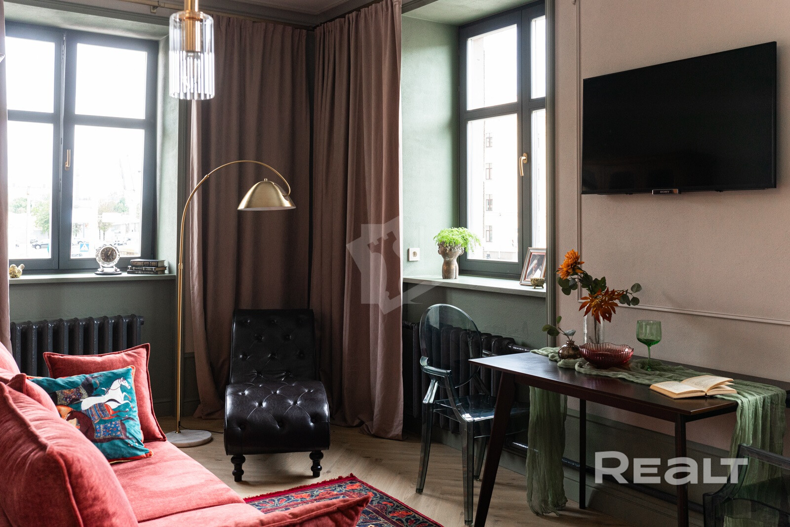 Эту квартиру действительно можно называть эксклюзивной. Она находится в доме прямо у площади Победы и в ней яркий и очень примечательный ремонт. Хозяевам удалось сохранить все прелести сталинки и гармонично вписать сюда современные элементы. Рассмотрим подробнее эту двушку, квадрат в которой обойдется в четыре с половиной тысячи долларов. Но ее можно купить в лизинг — а консультация вот здесь.