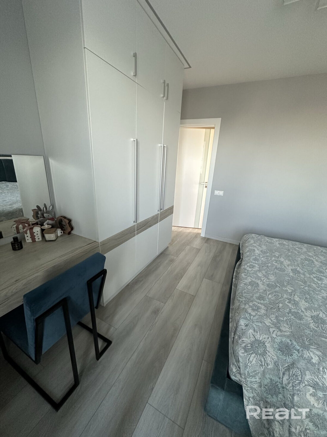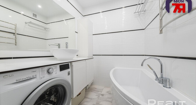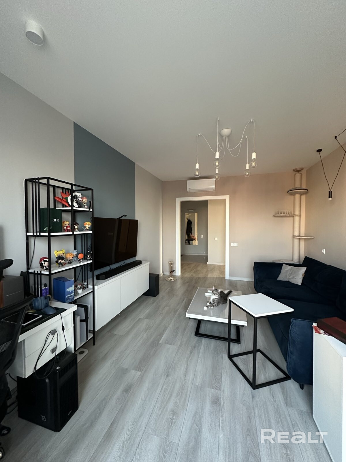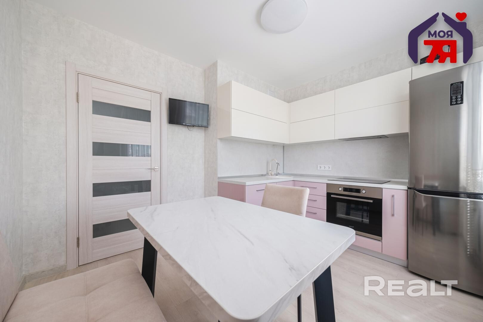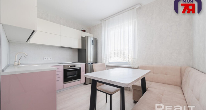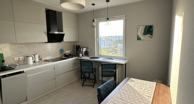 В квартире сделан ремонт: напольное покрытие в жилых комнатах и кухне — линолеум, в коридоре и санузле — керамогранит, на стенах — светлые обои. Установлен проточный очиститель воды под мойку, а также выполнена шумовиброизоляция коммуникаций. Кухня оборудована стильным кухонным гарнитуром со встроенной техникой и качественными смесителями. Стоимость квартиры — 109,9 тысячи долларов (1817 долларов — за метр).
