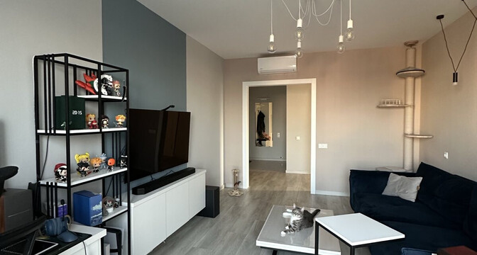 Второе предложение — тоже двухкомнатная квартира, расположенная на десятом этаже дома. Площадь этого жилья чуть побольше — она насчитывает 66 квадратных метров. Двушка состоит из кухни и двух отдельных комнат (гостиной и спальни). В квартире сделан ремонт в скандинавском стиле.