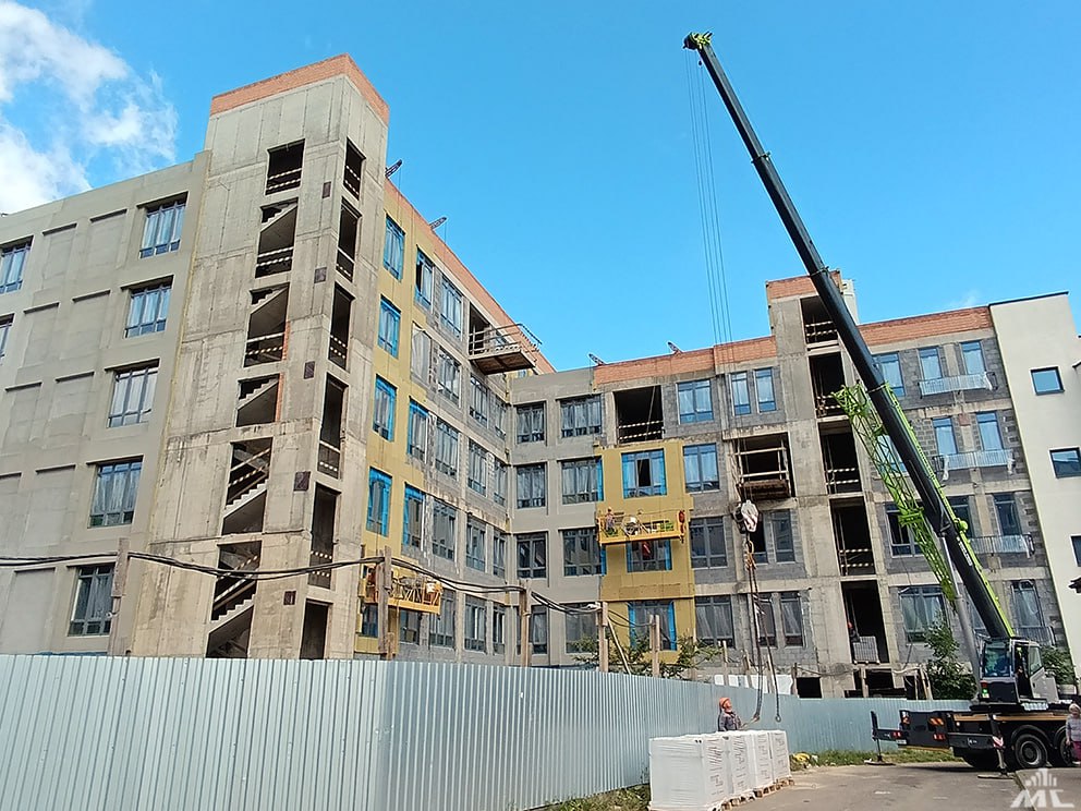 Сейчас строители занимаются отделкой фасада. Штукатурят и красят помещения внутри. Также устанавливают гипсокартонные перегородки, делают стяжки полов, черновые электро- и сантехнические работы. На этой неделе приступят к укладке плитки на пол в местах общего пользования и на балконах.