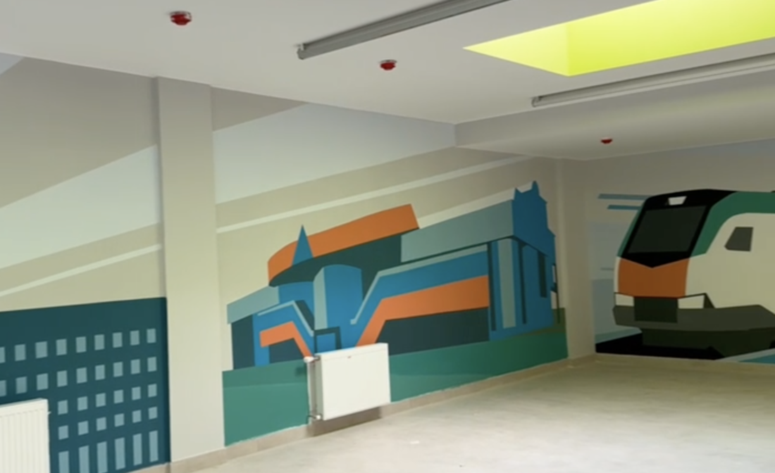 Про эту школу мы совсем недавно рассказывали: в ней будет уникальное направление — железнодорожный профиль. Оформление будет соответствующим — например, в фойе на стене нарисован поезд.