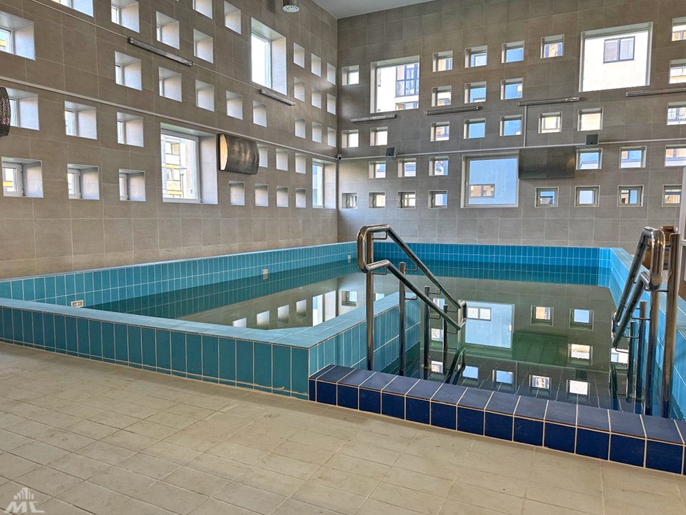 Обе чаши бассейна наполнены — они расположены в отдельно стоящем здании. Здесь же гардеробные, душевые.