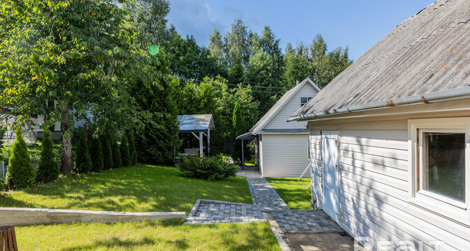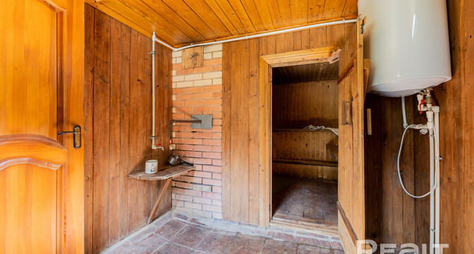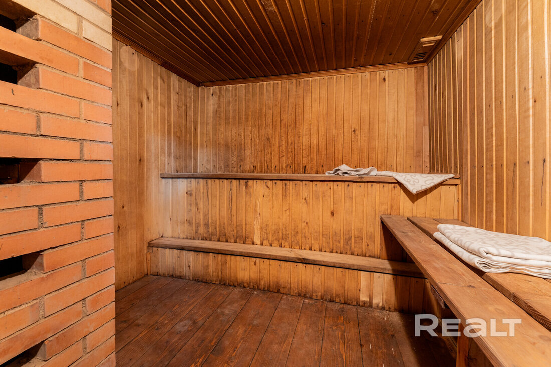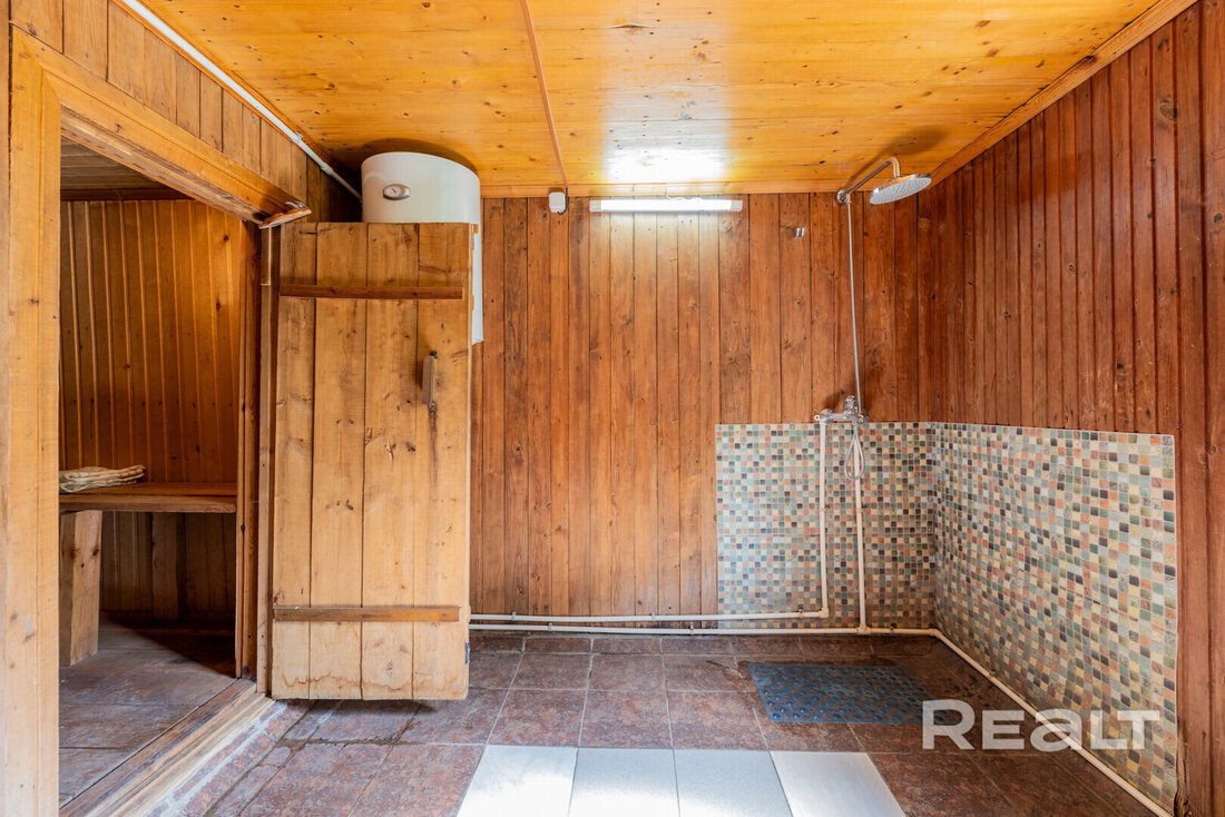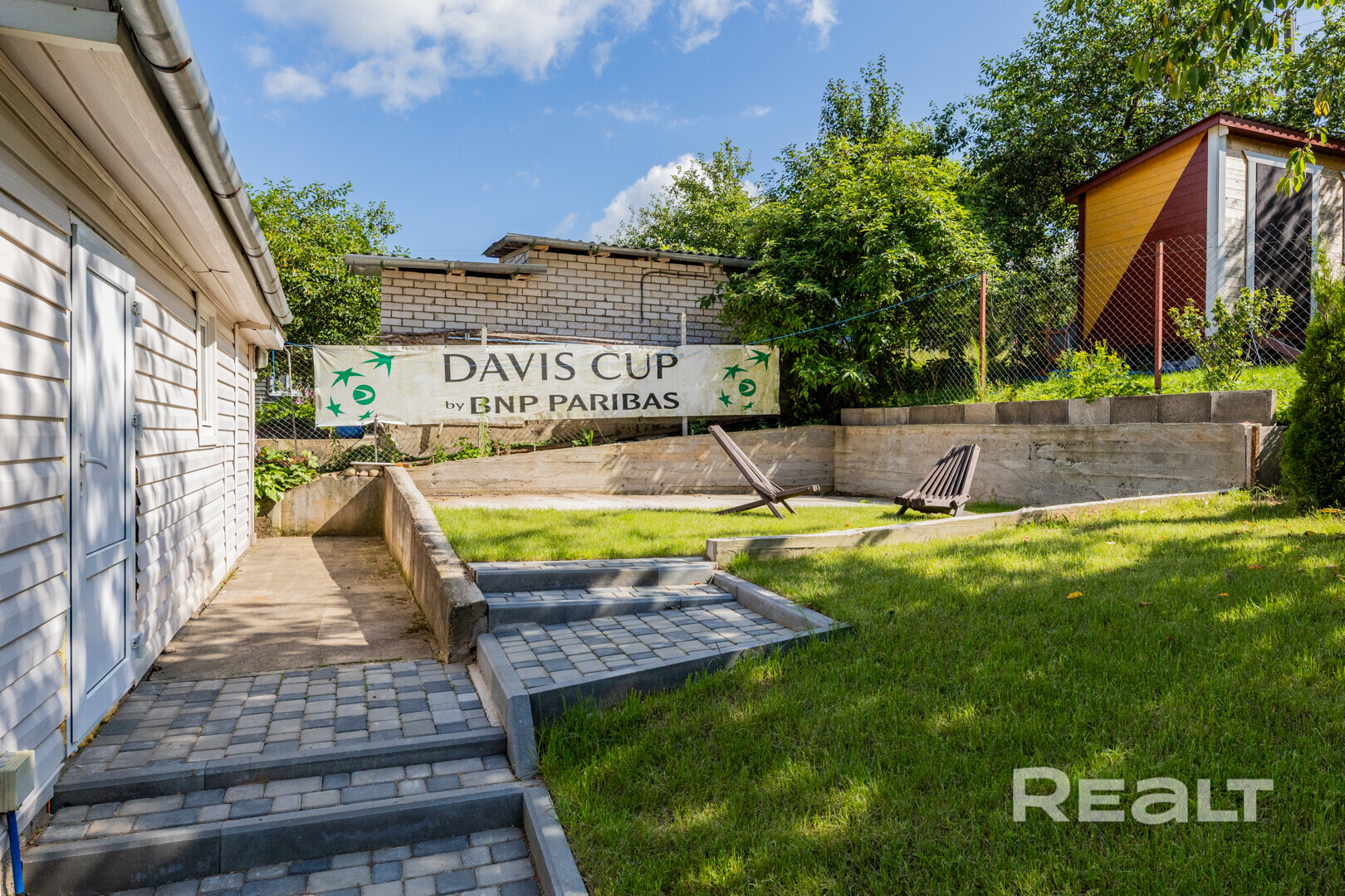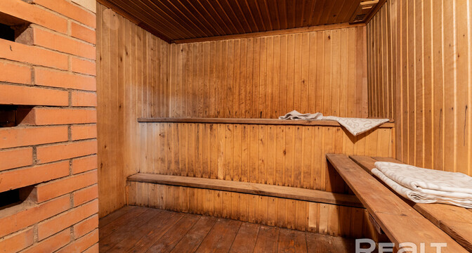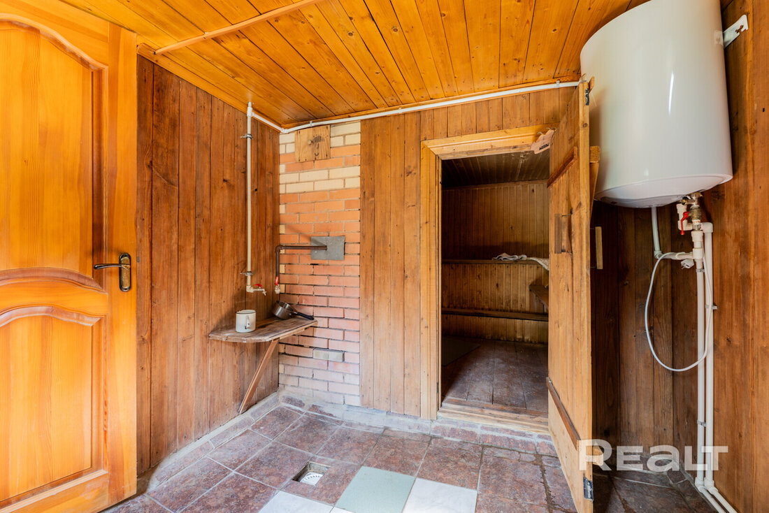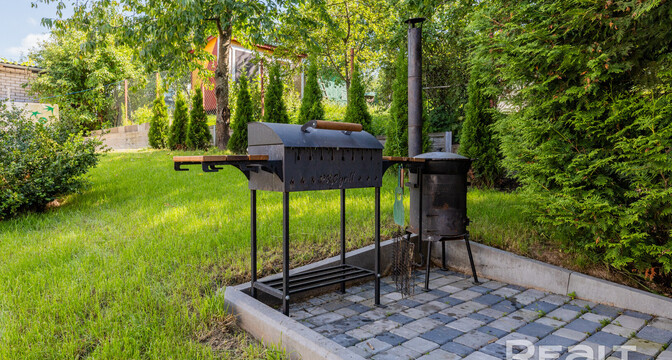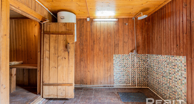 Участок занимает 4,26 сотки. На территории стоит отдельная баня с комнатой отдыха, парилкой. Здесь же есть бойлер и стиральная машина.