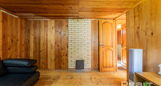 На первом этаже расположены кухня и две жилые комнаты. Отапливается дача с помощью печи, а вода тут сезонная, санузел на улице.
