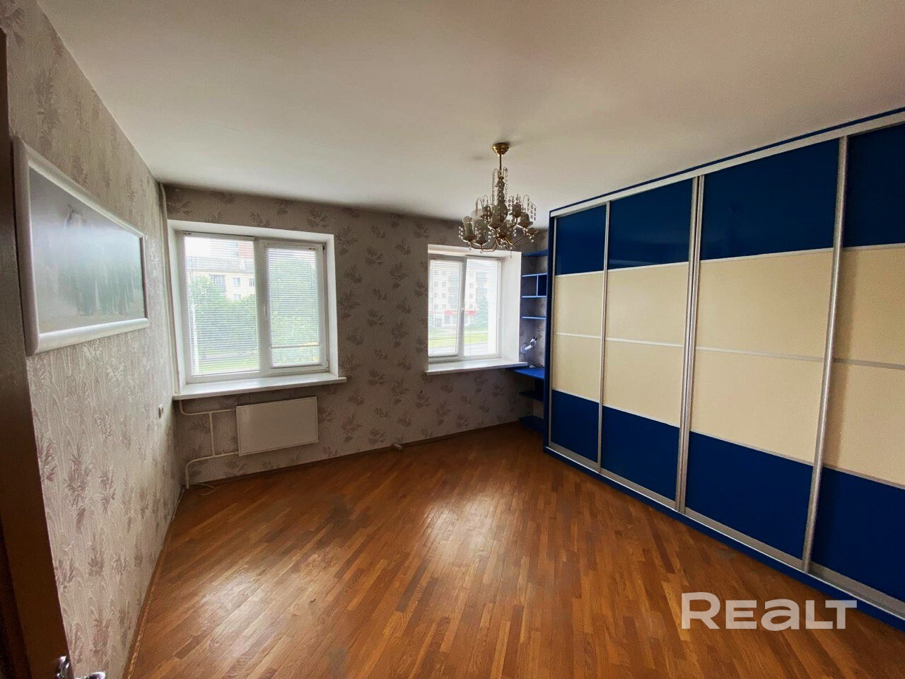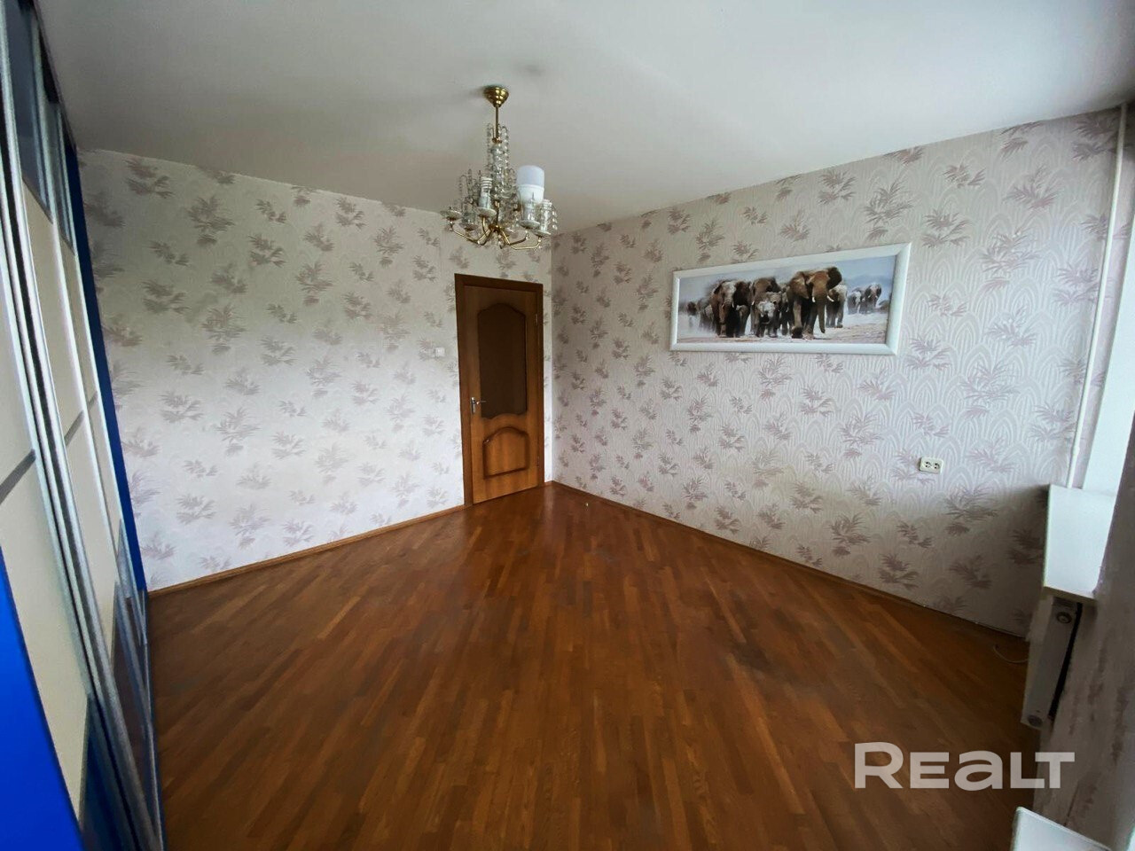 В квартире сделан спокойный ремонт из 2000-х. Тут много дерева, паркет на полу.