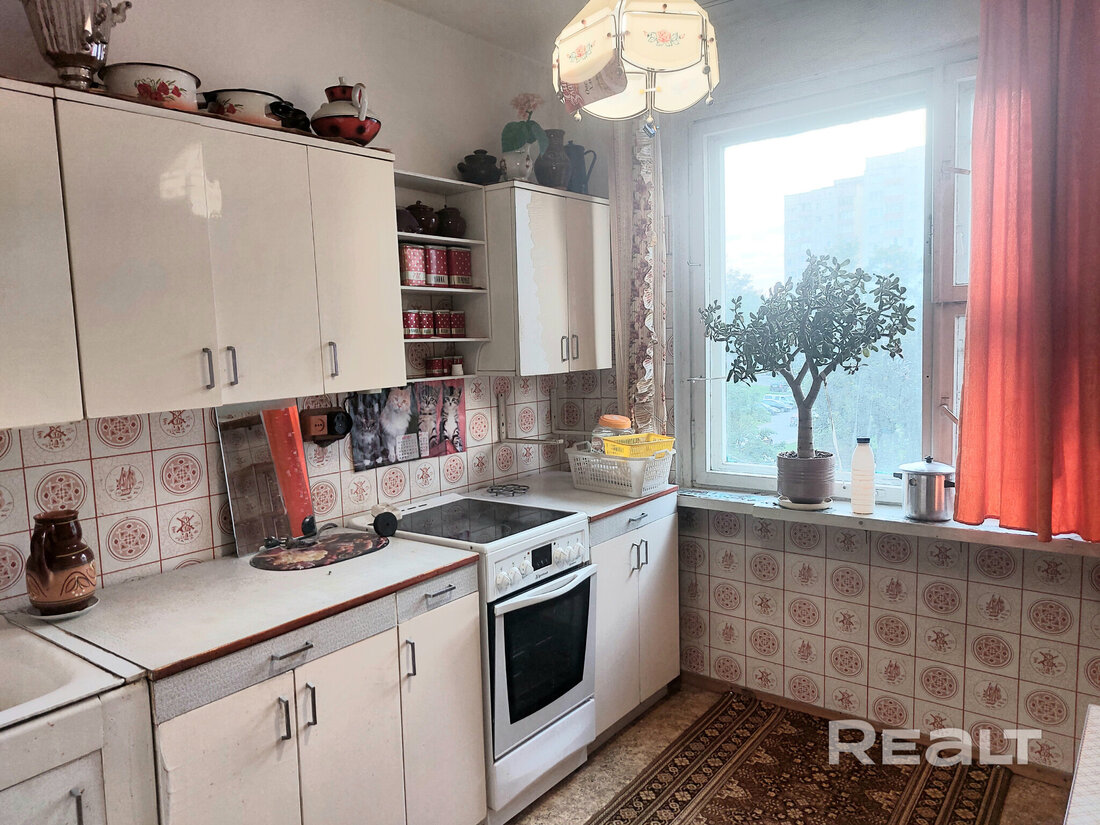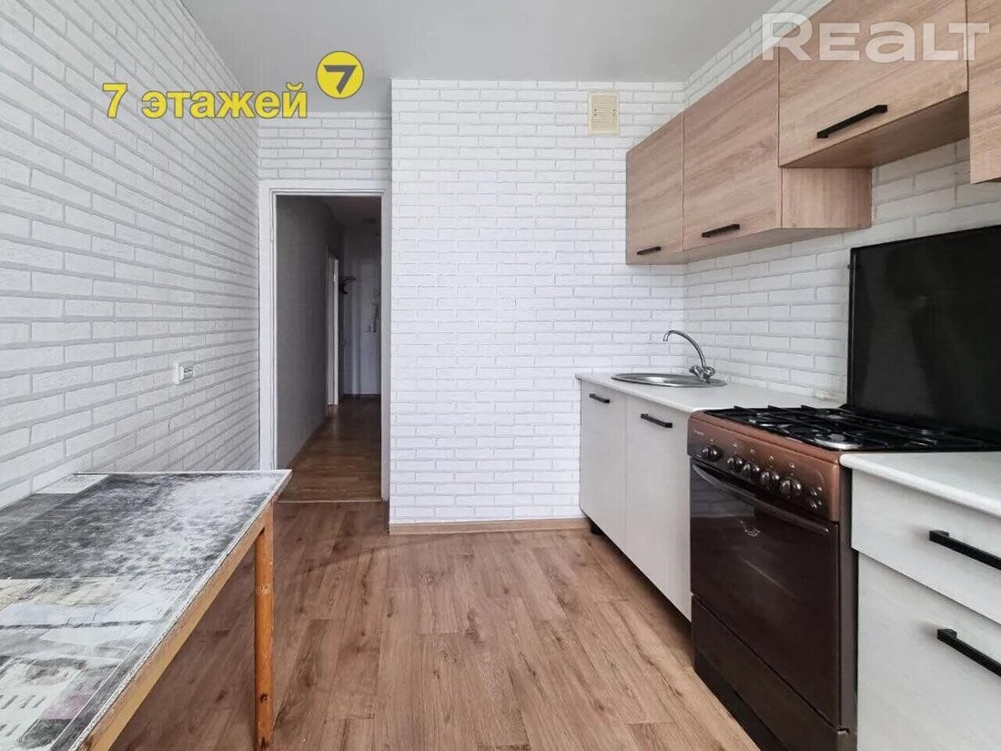 Последняя квартира располагается в десятиэтажке на Притыцкого, 106. Дом построен в 1989 году. Однушка продается на четвертом этаже. Ее площадь — 35,2 м². Из них 7,1 м² приходится на кухню.