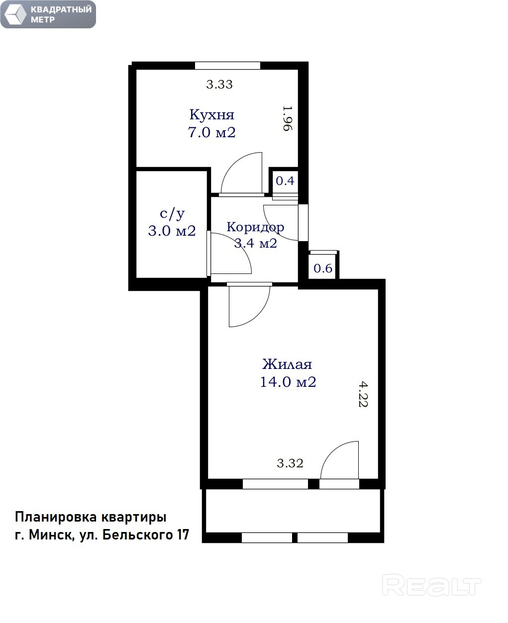 В 1976 году на Бельского, 17 был построен девятиэтажный дом. На четвертом этаже продается квартира в 28,4 м² с кухней в 7 м².