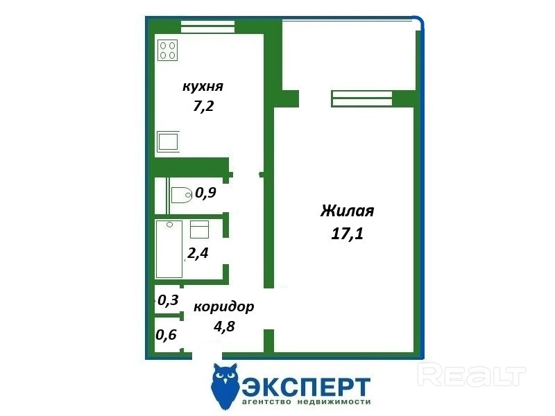 12-этажный дом на Притыцкого, 3 был построен в 1978 году. Однушка продается на пятом этаже и занимает 33,1 м². На кухню отведено 7,17 м².