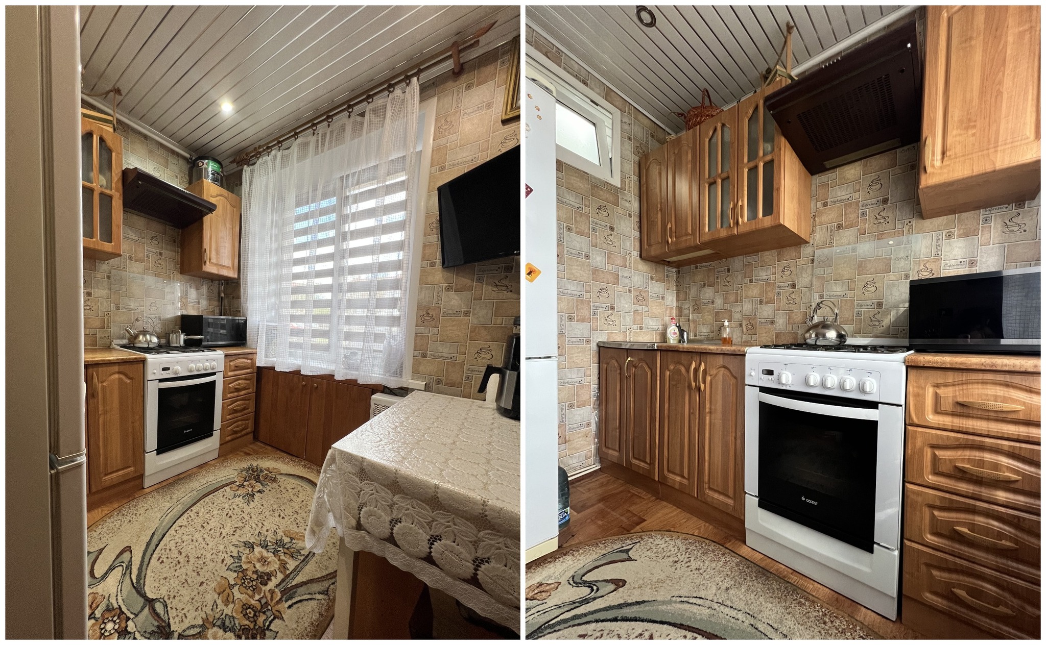 Квартира выглядит аккуратной. В ней остается все, что есть на фото: кухонный гарнитур с техникой и мебель.