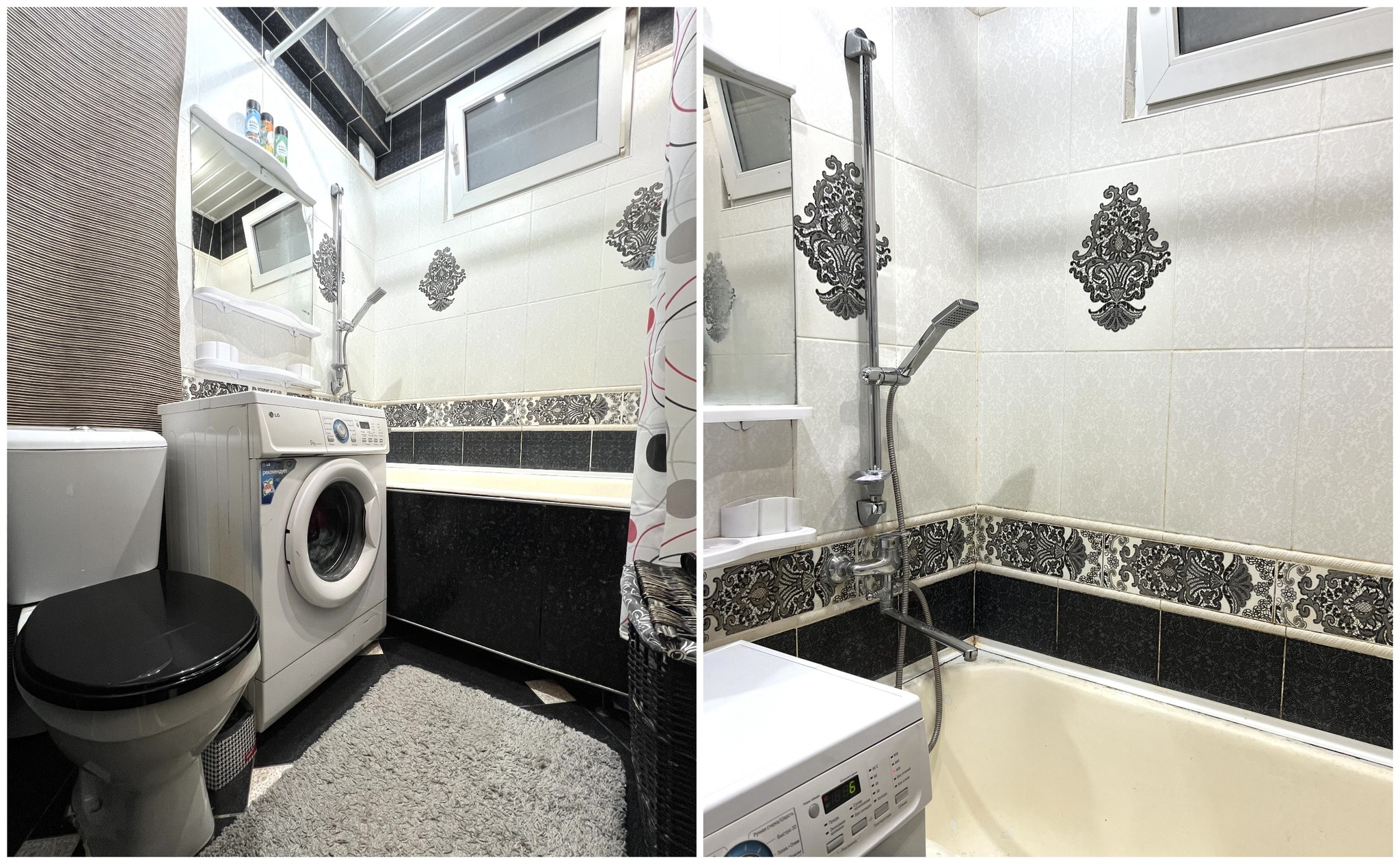 Совмещенный санузел облицован плиткой.