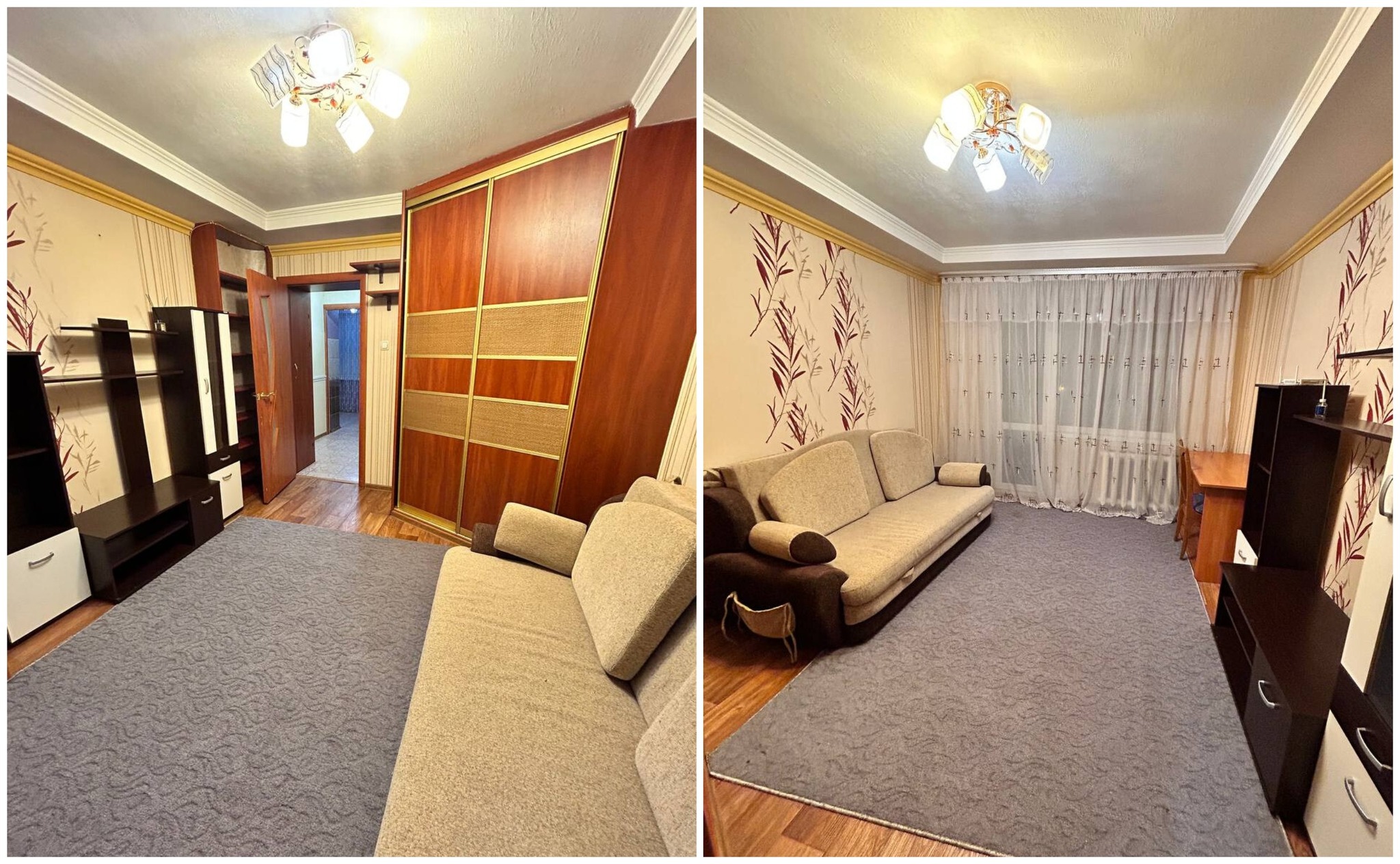 Жилье нуждается в обновлении. На полу лежит линолеум. Из комнаты есть выход на застекленный балкон. В окнах стоят стеклопакеты.