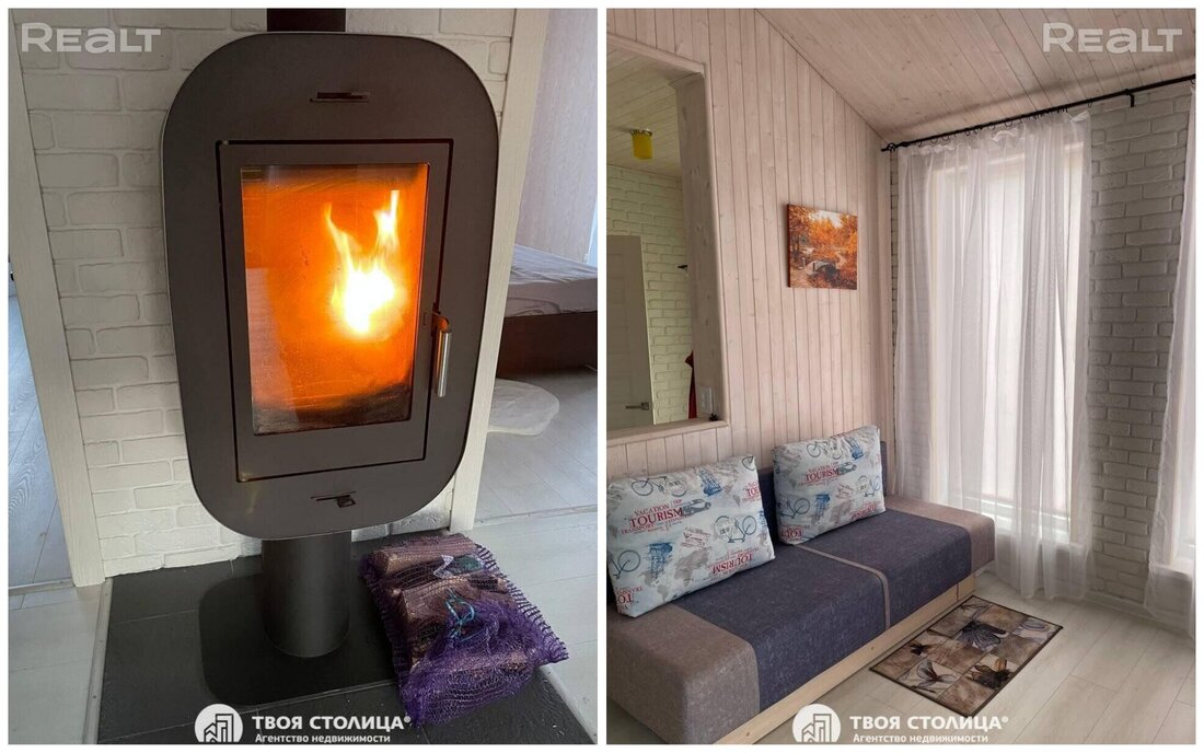 Все удобства заведены в дом: отопление — печь-камин, канализация — местная, вода — сезонная. Электричество — 220 В, рядом расположена новая трансформаторная подстанция. Санузел оборудован душевой кабиной и бойлером.