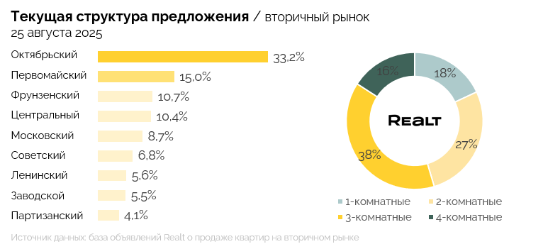 Динамика предложения по всем районам показала разнонаправленные изменения. Существеннее всего это коснулось Заводского района — плюс 4,6%, также Ленинского района — плюс 3,9%.