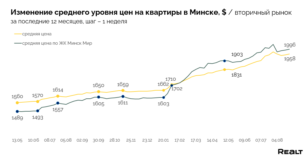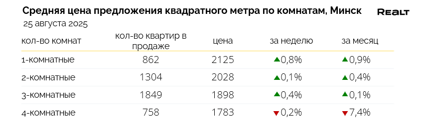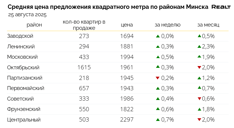 На объем предложения и индекс цен в Минске сильно влияет большое количество объявлений в базе Realt о продаже квартир в строящихся новостройках преимущественно Октябрьского, а также Центрального и Московского районов. Чтобы минимизировать их воздействие на показатели, описывающие вторичный рынок продажи квартир, все представленные ниже данные рассчитаны без учета квартир в строящихся домах.
