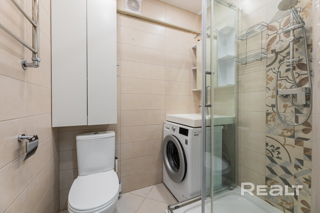 Санузел в квартире совмещенный. Вместо ванны установлен душ.