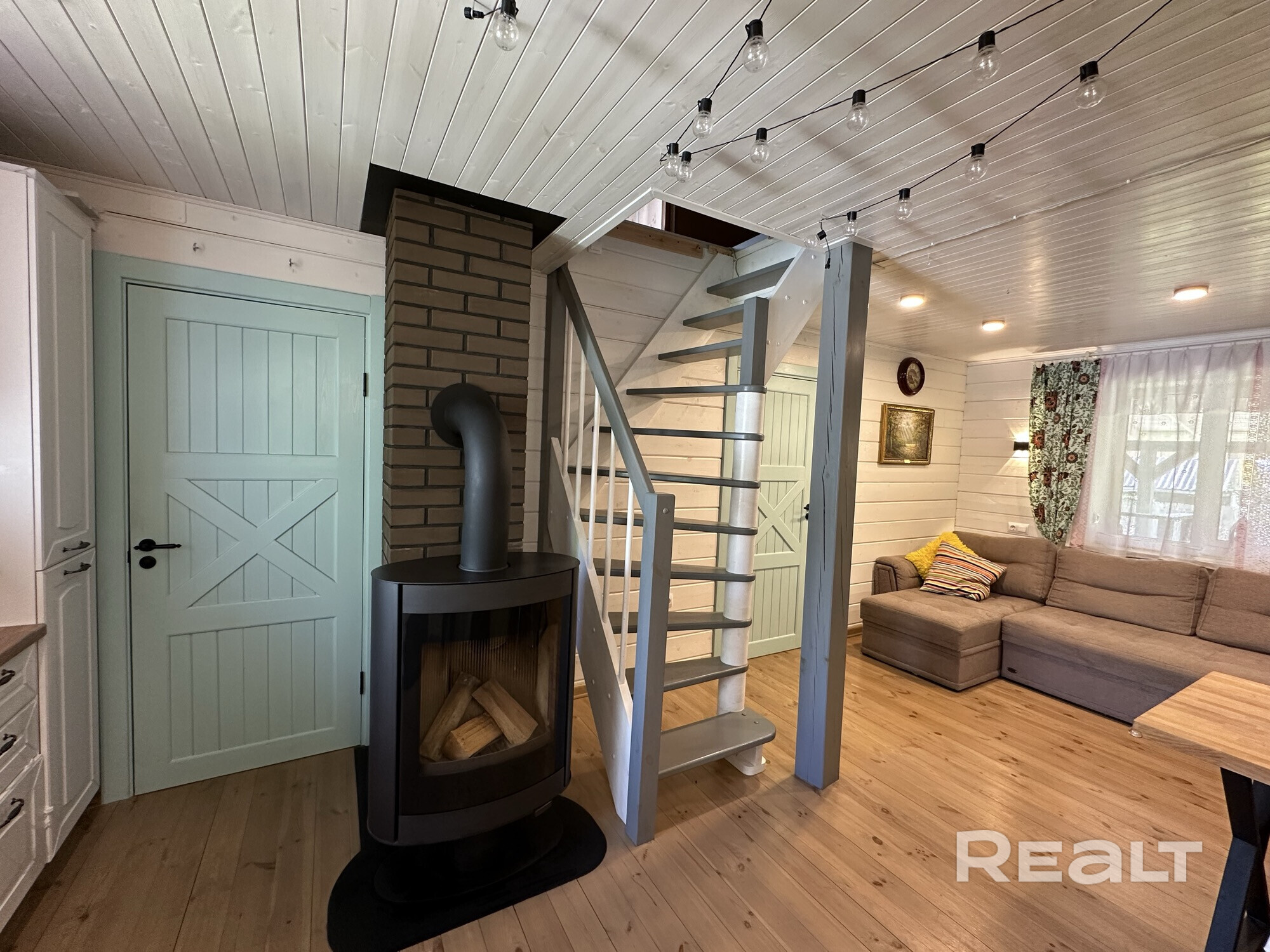 Главный козырь этого варианта для загородной жизни — расположение. Всего 30 км от МКАД по Гомельской трассе. Дорога до Минска займет не более 25−30 минут. В деревне развитая инфраструктура: в шаговой доступности большой магазин, отделение связи, школа, детский сад и амбулатория. Есть пункты выдачи Wildberries и OZON. Сюда ходит маршрутка. В 700 метрах от дома — река Свислочь и лес. Неподалеку работает конно-спортивный клуб.