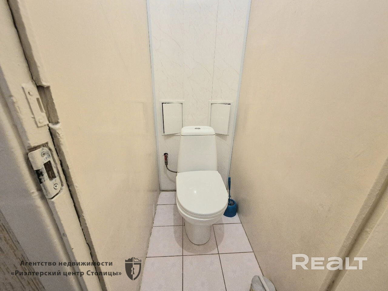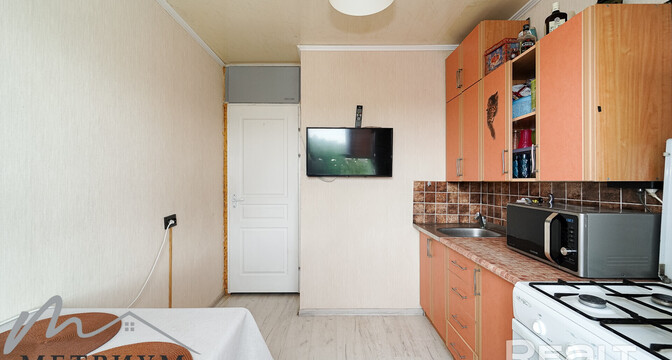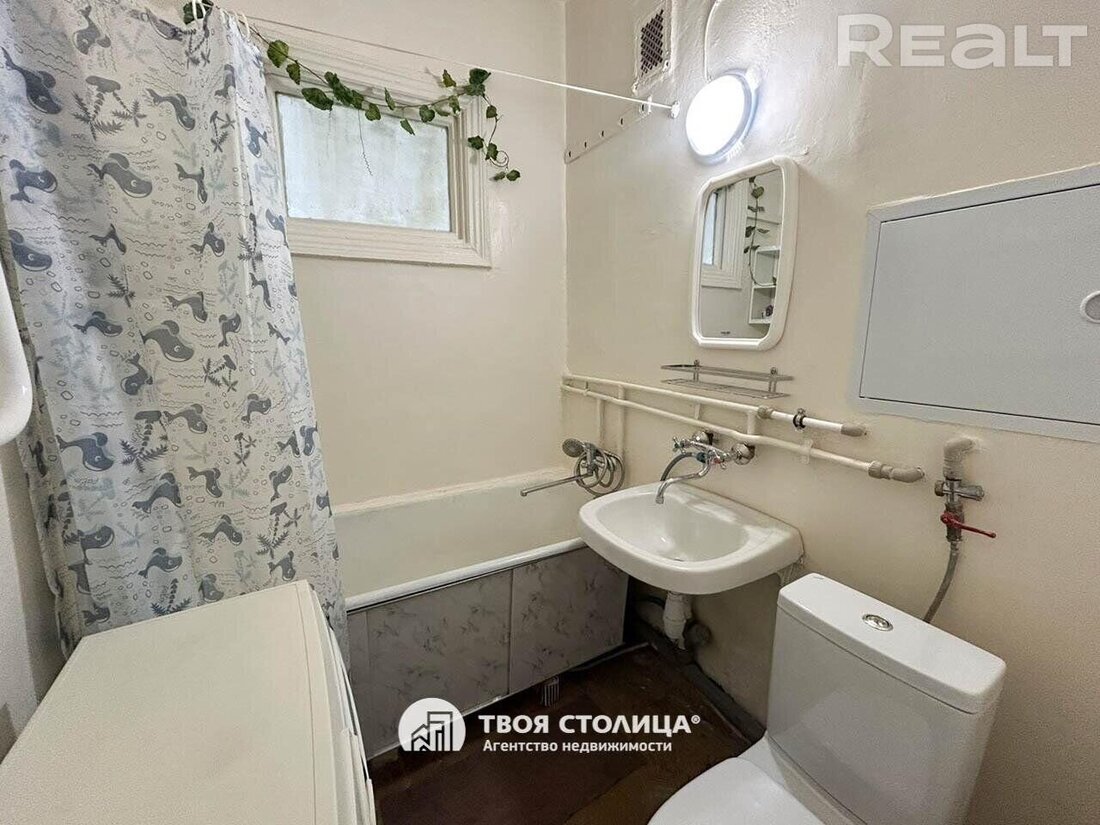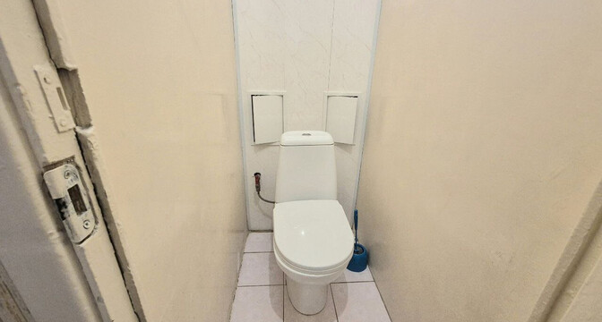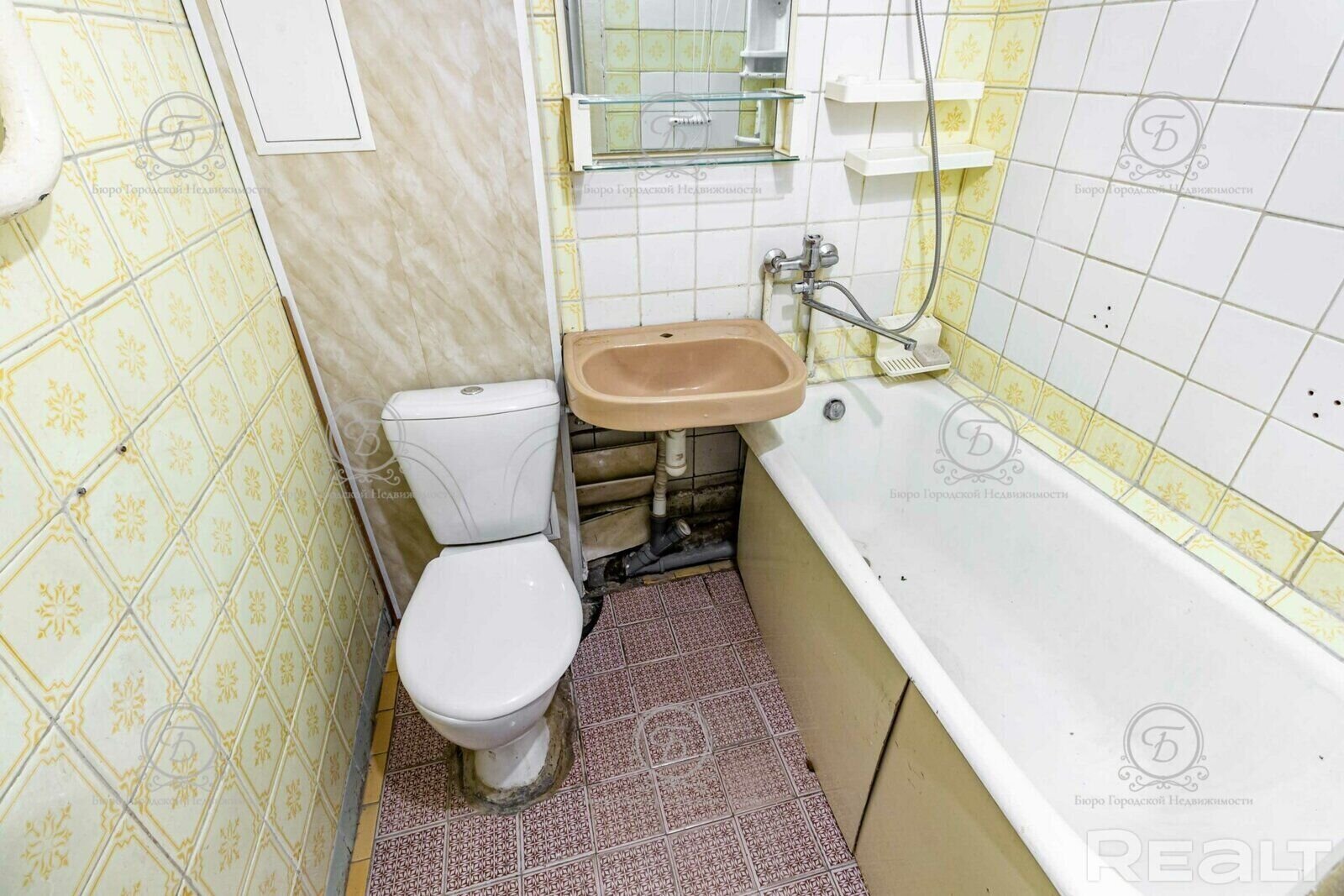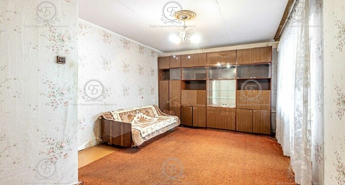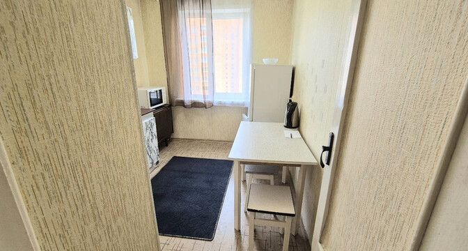 Ее площадь — 33,6 м², кухня занимает 7,15 м². Жилье нуждается в современном ремонте. Тут раздельный санузел, есть несколько ниш для хранения вещей. Балкон отсутствует.