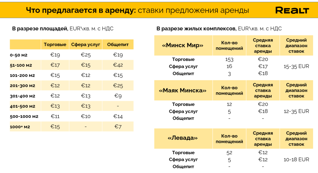 Например, в таких знакомых всем жилых комплексах, как «Минск Мир» и «Маяк Минска» стоимость аренды варьируется в среднем от 15 до 35 EUR.
