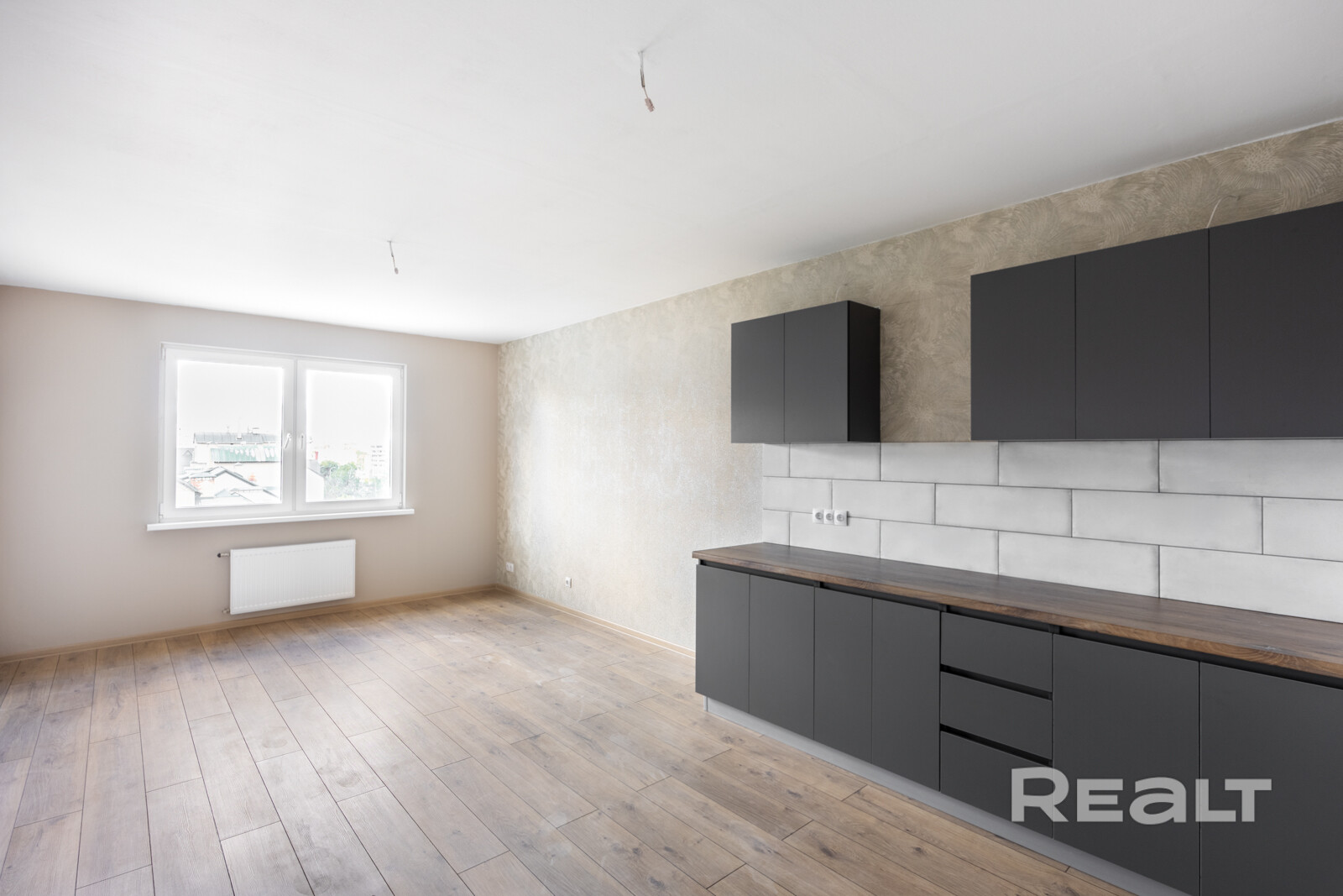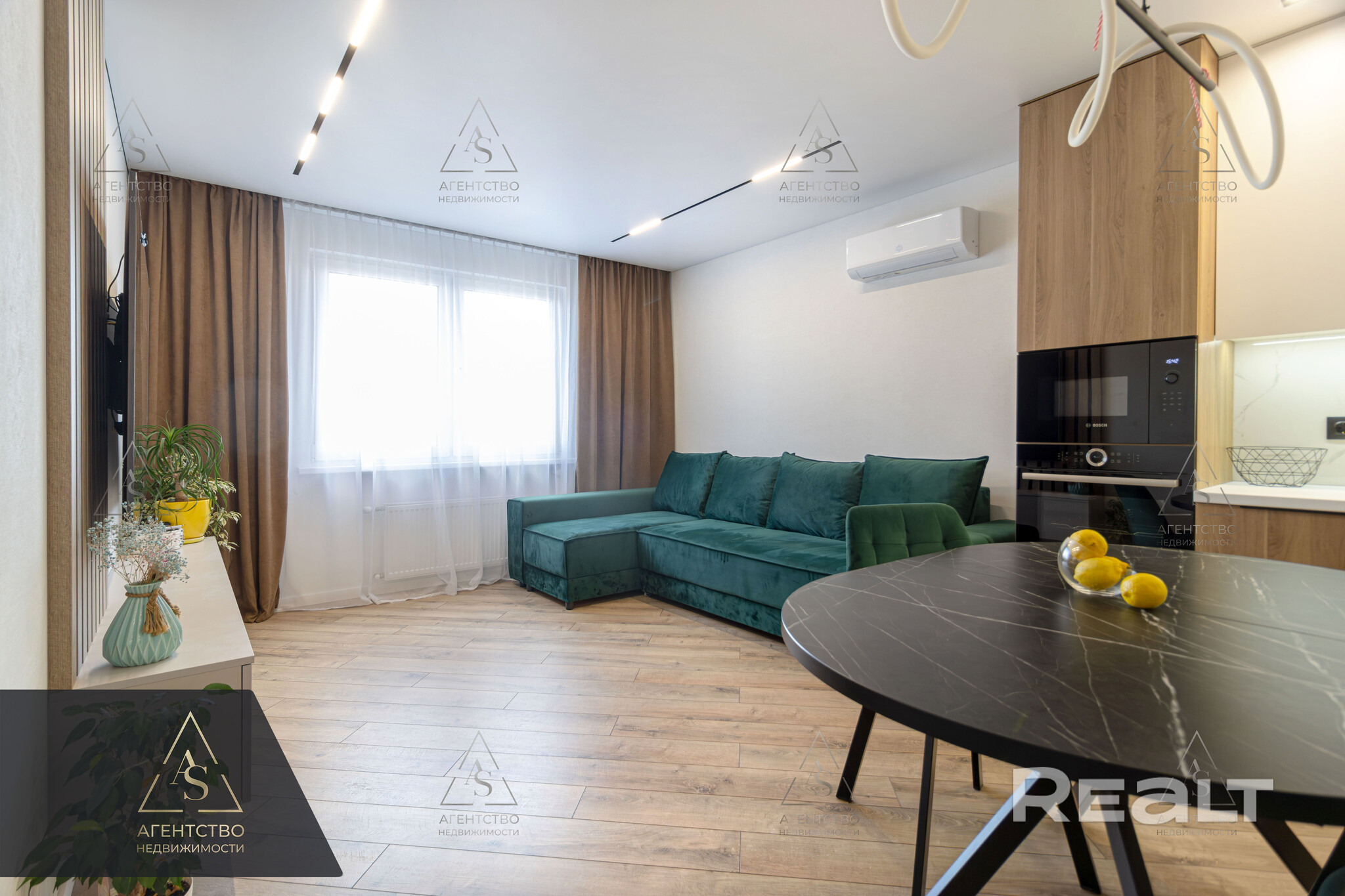 Самый экономичный вариант — евродвушка площадью 43 квадратных метра. Жилье находится на третьем этаже. Квартира полностью готова к проживанию. В кухне есть посудомойка, варочная поверхность, микроволновая печь, холодильник, в спальне — кровать и шкаф-купе. Совмещенный санузел облицован плиткой, оборудована душевая кабина, есть стиральная машина. Стоимость жилья составляет 119 тысяч долларов (2744 доллара — за метр).