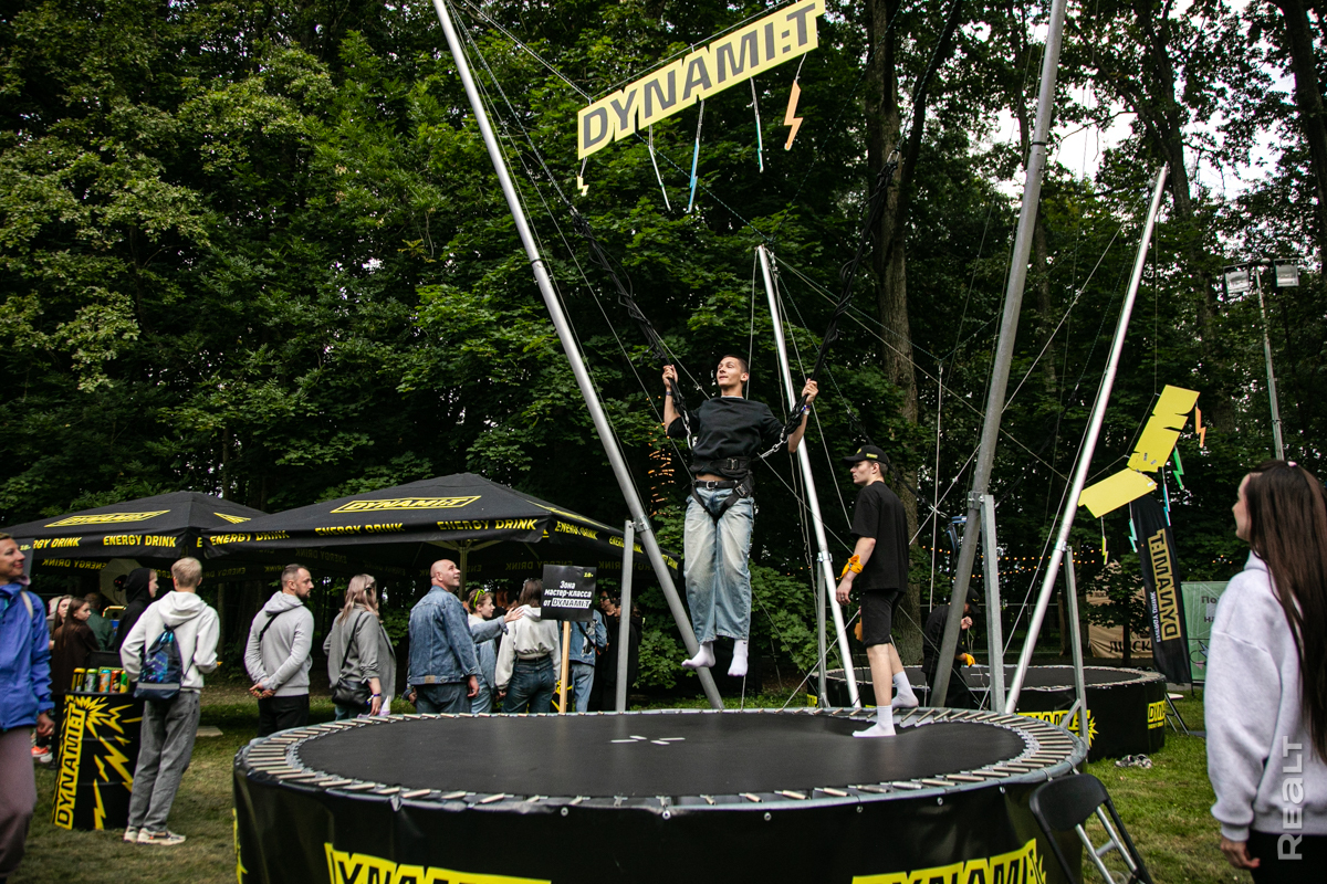 Музыкальный фестиваль Wostrau Nesvizh Fest проходит уже третий год подряд и успел стать главным событием для города. Праздник стартовал в пятницу. Уже к вечеру все партнерские зоны были готовы к встрече гостей. Сложно было устоять перед батутами в зоне Dynamit, а яркая дача Realt собирала очереди ради фото с огородом и бассейном с уточками. Betera выстроила настоящую стритбольную площадку и выкатила Cybertruck, который без остановки снимали на телефон.