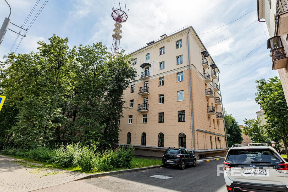 Дом находится рядом с берегом Свислочи. Из окон видна телебашня, поблизости — станция метро «Площадь Победы».