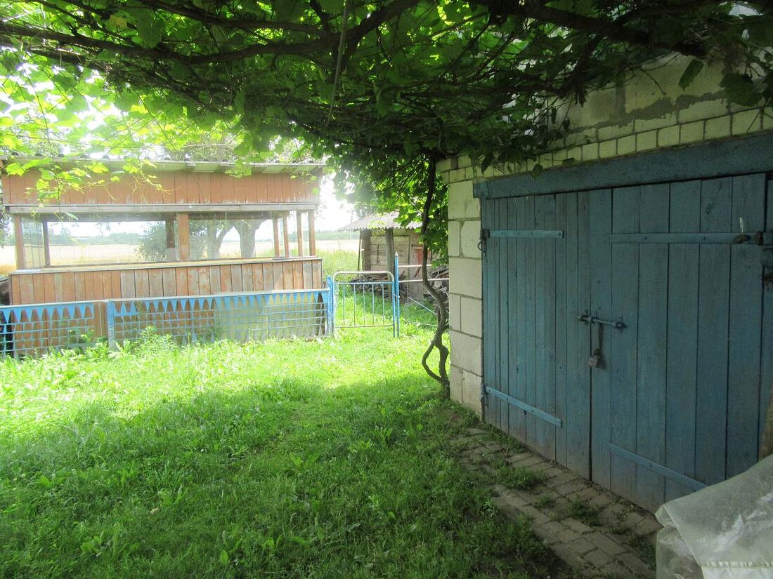 Участок почти 30 соток, ухоженный, с садом, крепкими сараями, гаражом, беседкой и погребом. Имеется сад, огород. В информации, предоставленной организатором аукциона (электронная площадка по продаже имущества «БелЮрОбеспечение»), указано, что схема участка, имеющаяся в материалах инвентарного дела, не соответствует фактическому расположению жилого дома и хозяйственных построек относительно друг друга. На торги же дом попал из-за долгов владельца.