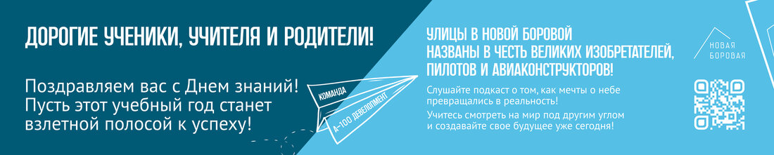 — День знаний — идеальный день, чтобы заложить основу своего будущего, — отметили в компании «А-100 Девелопмент». — Для нас Новая Боровая — это не просто улицы и кварталы. Это место с уникальной атмосферой. Именами пионеров авиации названы наши улицы, и вот теперь по соседству со школой мы создаем Авиа-квартал. Мы бы очень хотели, чтобы идя на линейку в школу, или просто прогуливаясь по району, взрослые и дети видели напоминание о том, что любая мечта, любая цель — достижима. Нужно только взять правильный старт и высоту.