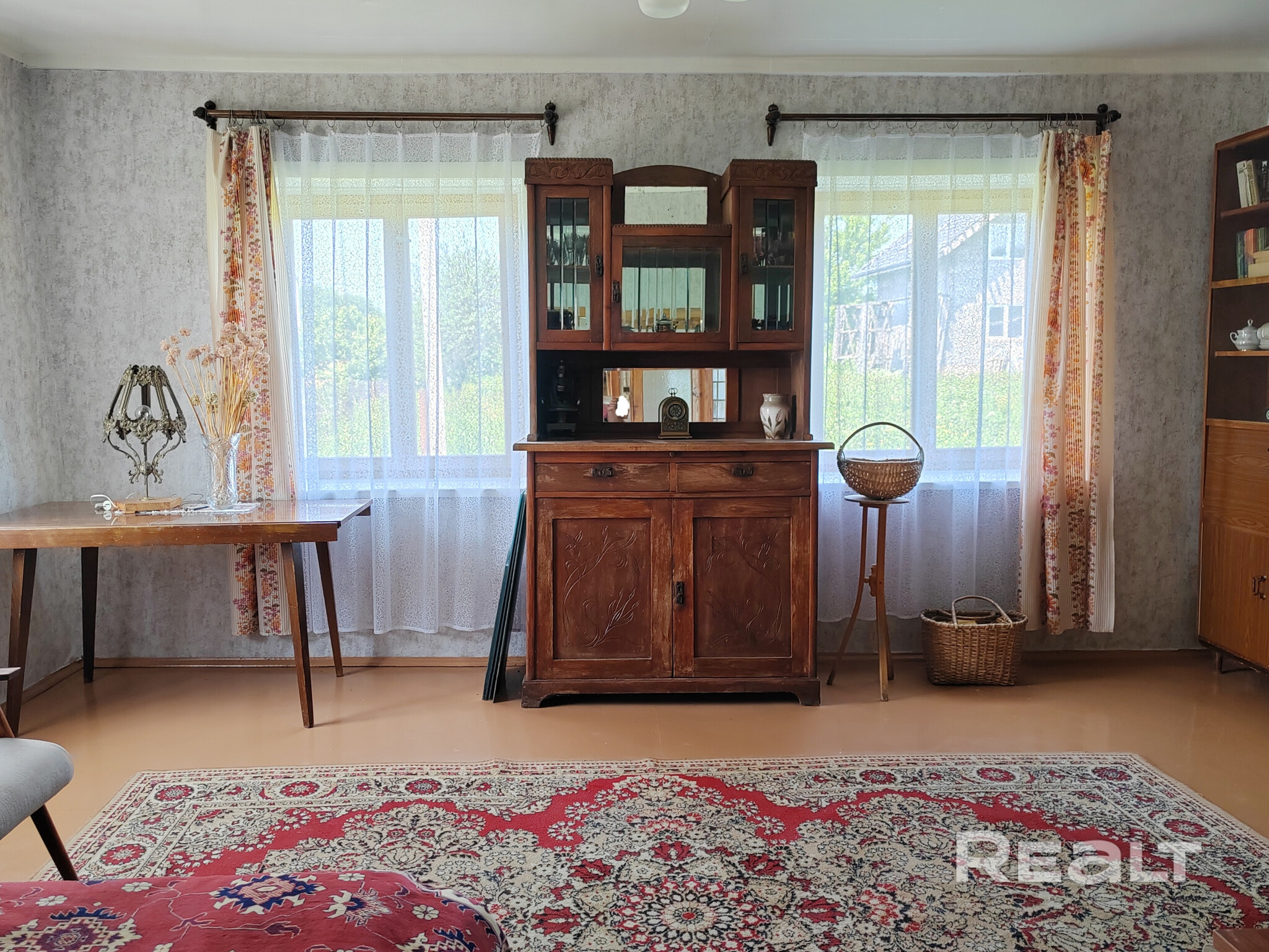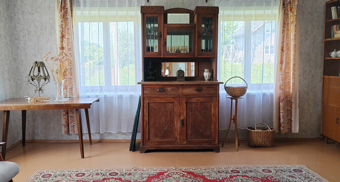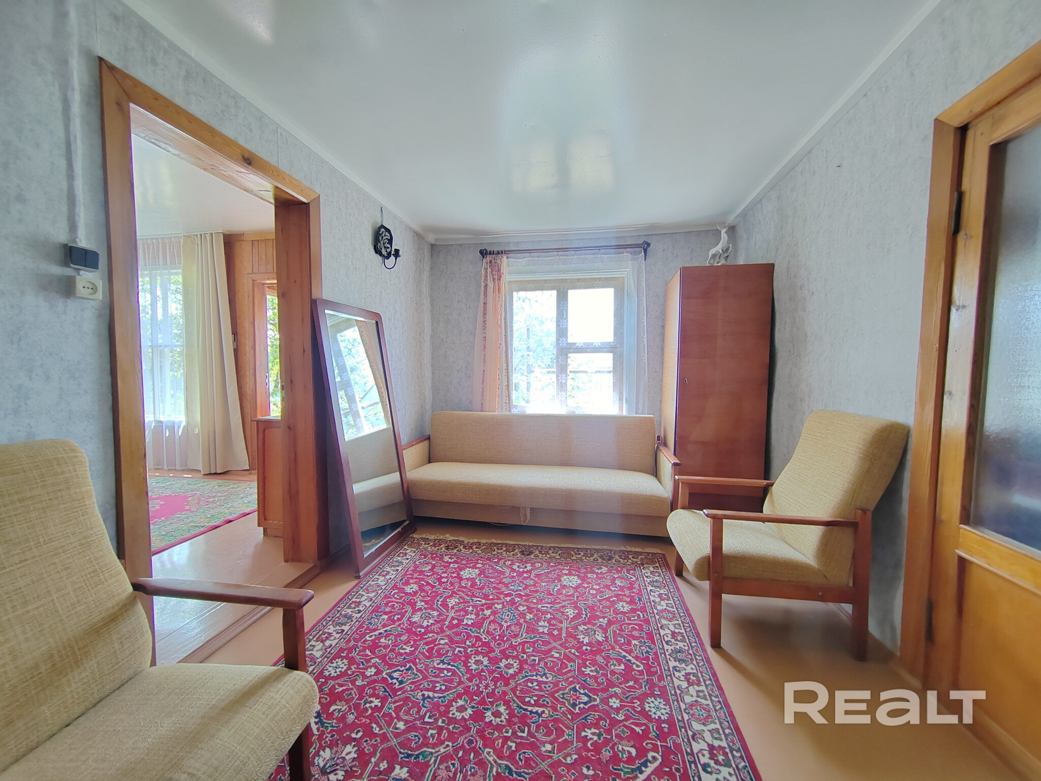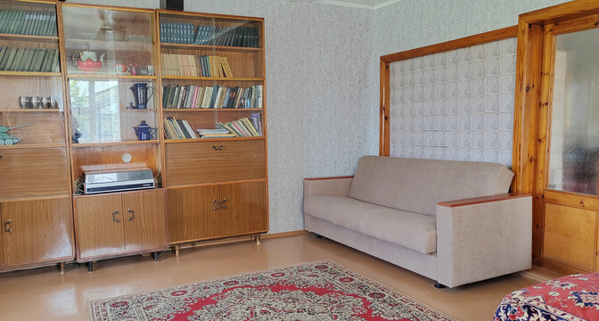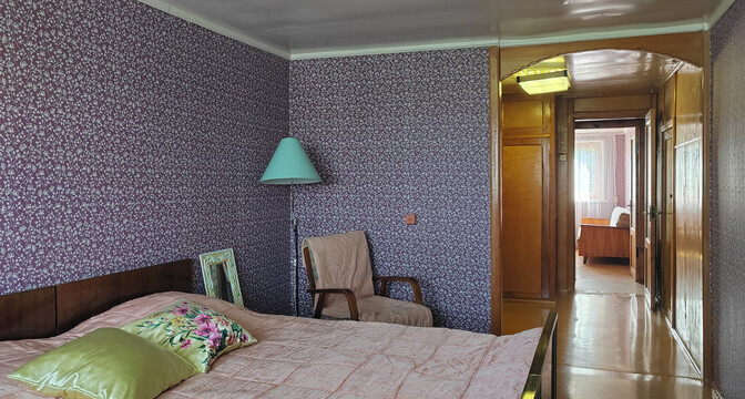 Все комнаты выглядят аккуратно, обставлены деревянной мебелью советских времен.