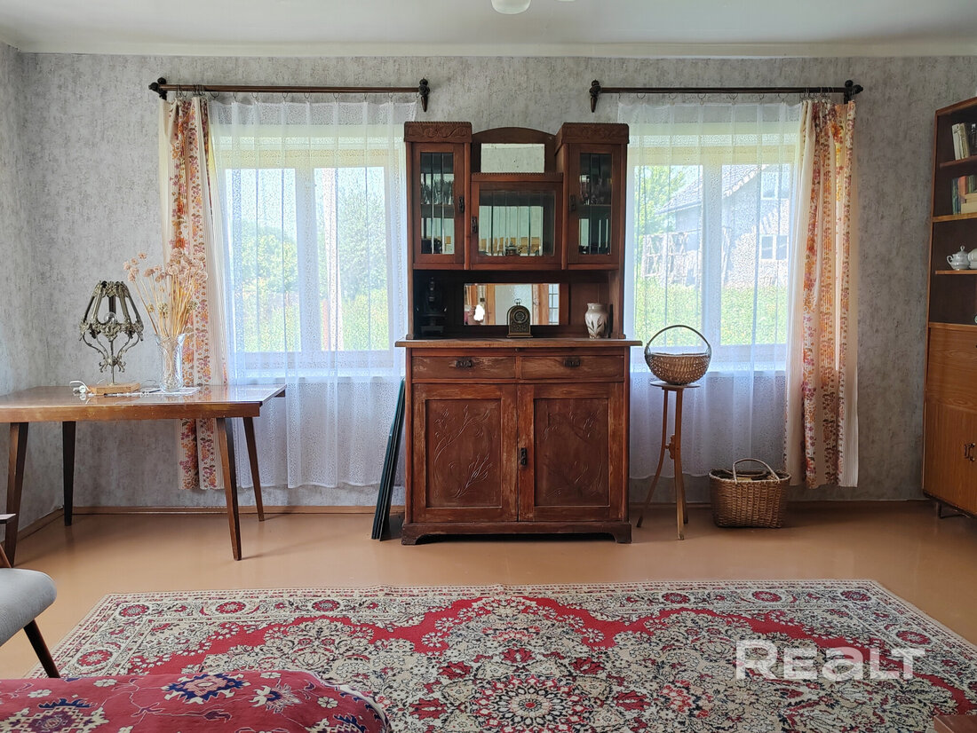 Нашли в Борисовском районе атмосферную деревянную дачу с большими окнами, обставленную советской мебелью. В доме есть печь, введена центральная вода. На участке также стоит баня и летняя кухня. Показываем фотографии дома, за который просят меньше 30 тысяч долларов.
