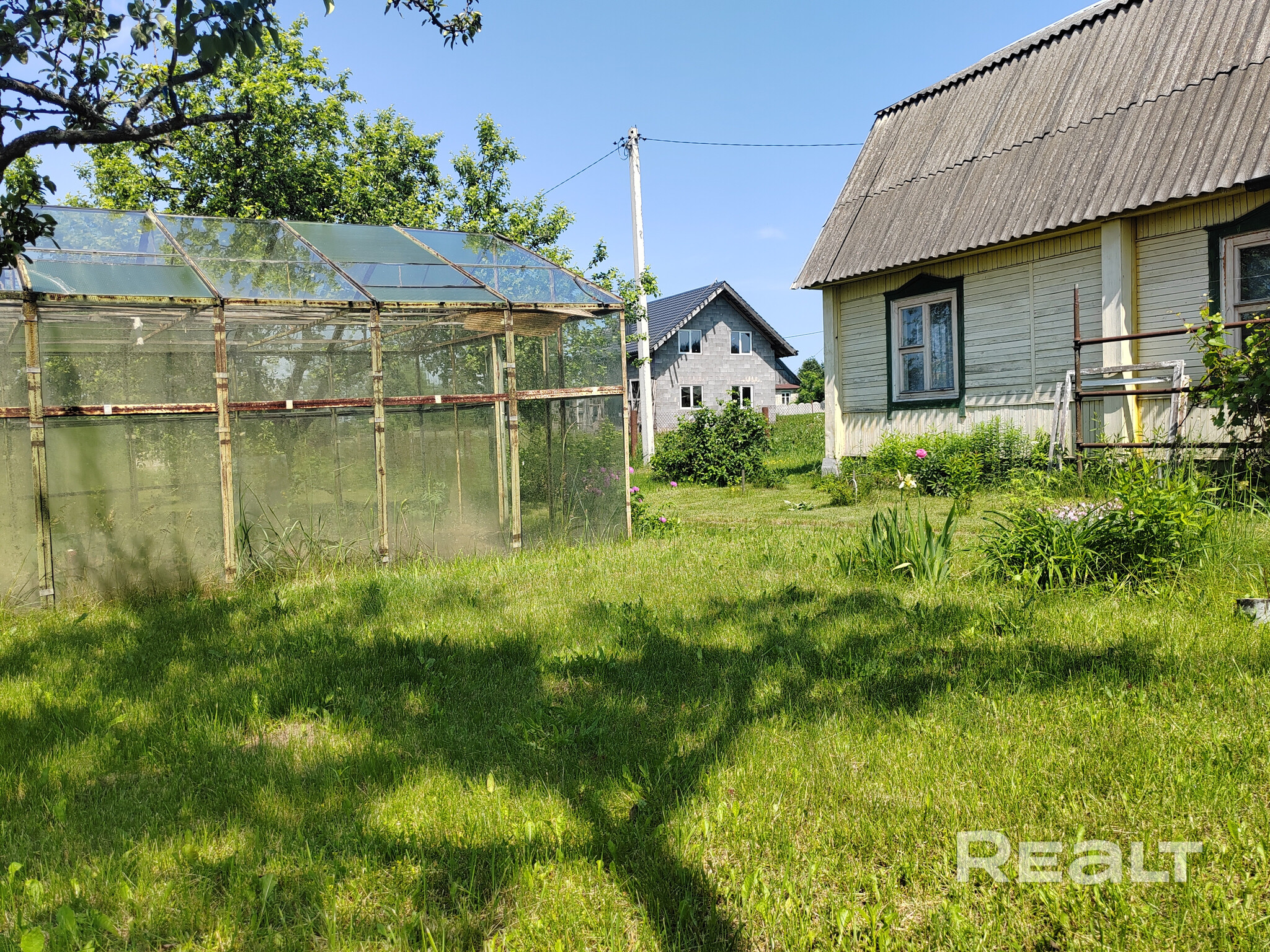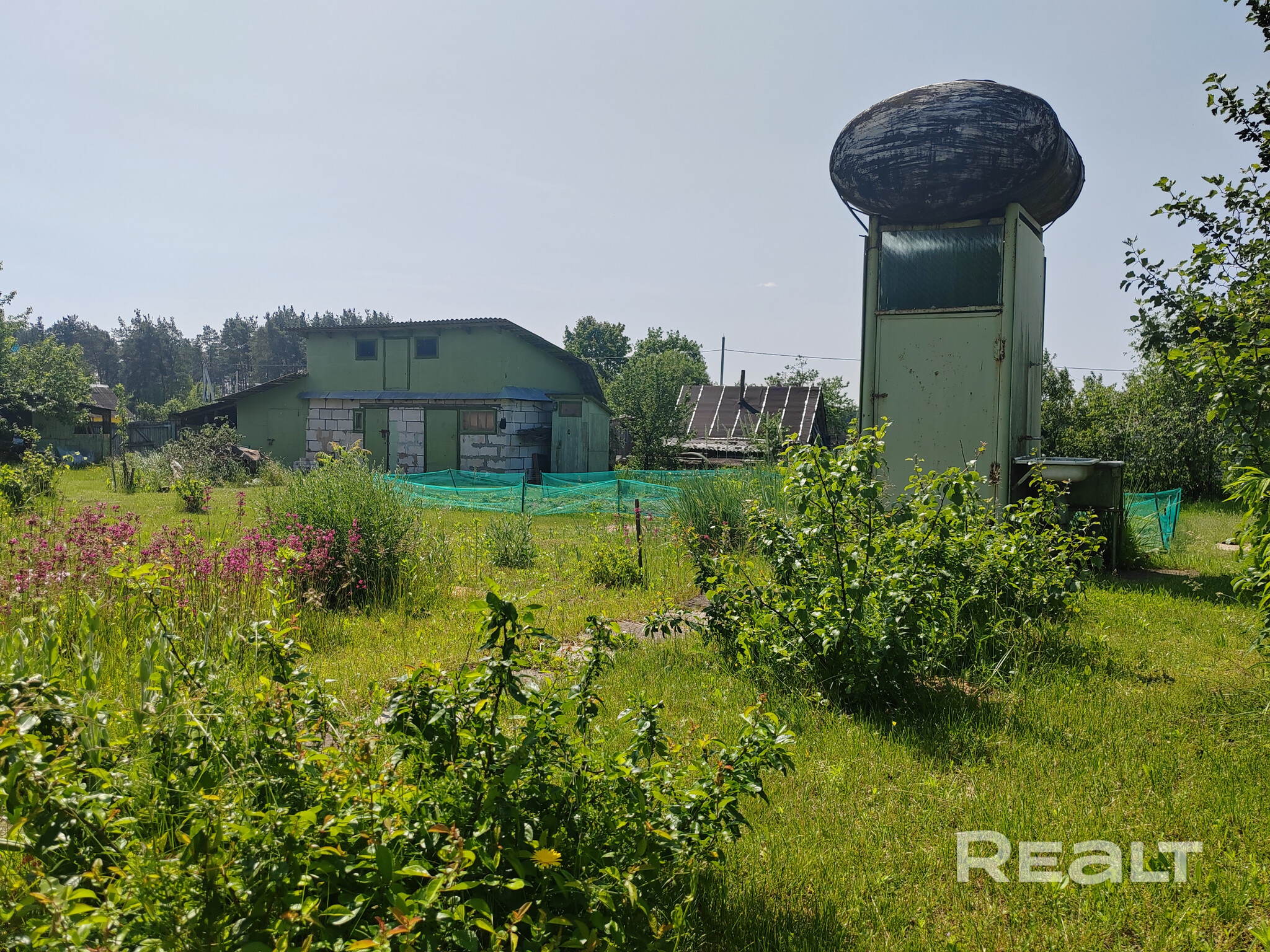 На территории стоят баня, сараи, гараж, сделаны летняя кухня и душ. Также покупателю достанется стеклянная теплица.