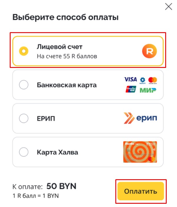 Шаг 3 — нажимаете «оплатить» — и у вас списываются R баллы в эквиваленте рублей.