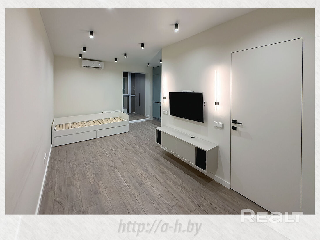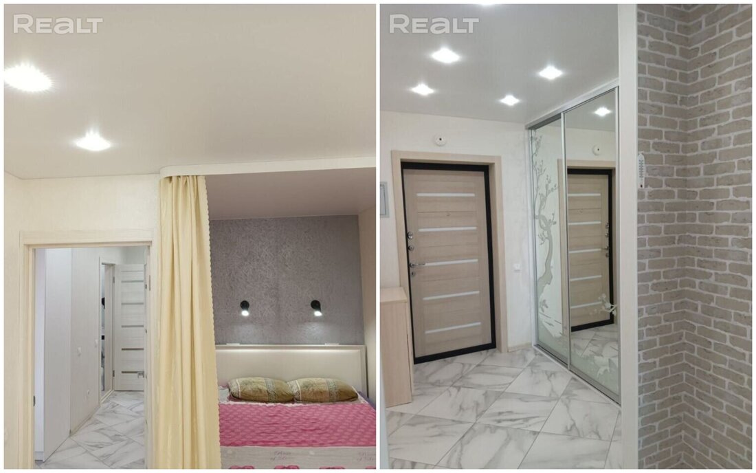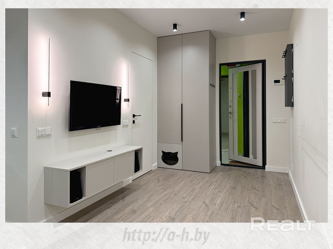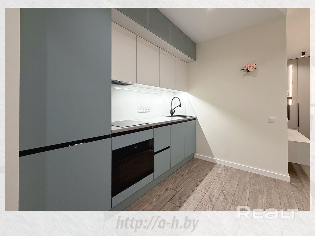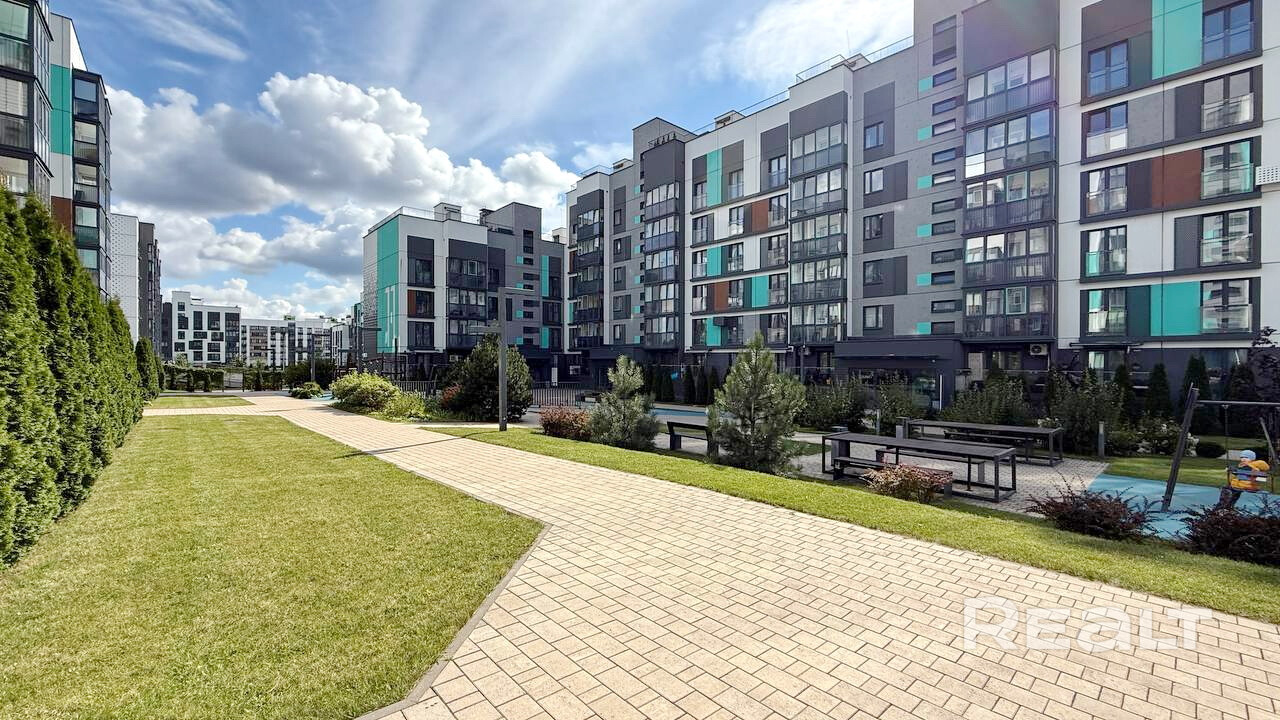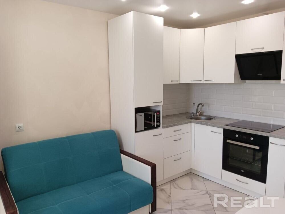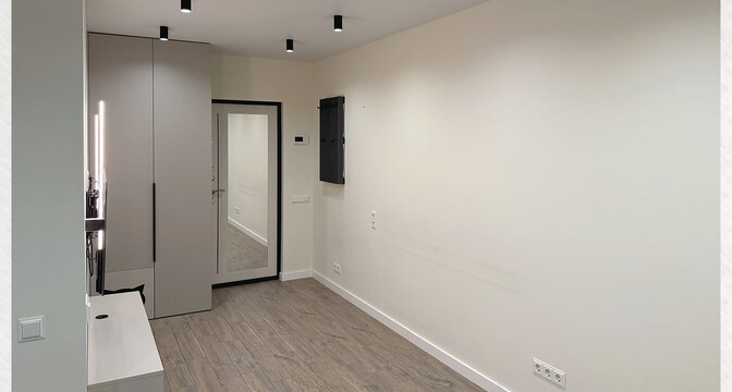 Последняя квартира в подборке находится в ЖК «Минск-Мир» в 25-этажном доме на Игоря Лученка, 8. Дом сдали в эксплуатацию в 2023 году. Студия располагается на 17-м и занимает 25,1 м². Около дома есть кафе и продуктовый магазин. За 10 минут на общественном транспорте можно добраться до центра города. В пешей доступности — станция метро «Аэродромная».
